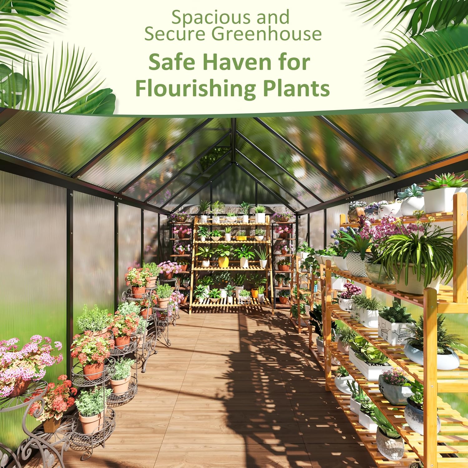 6x11 FTQuick Setup Polycarbonate Greenhouse with Roof Vent, Large Aluminum Walk-in Green House for Outdoor Garden Backyard, Black