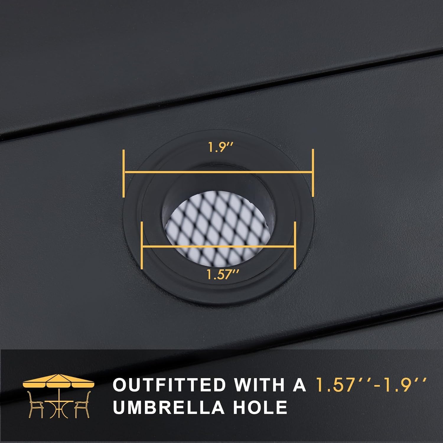- 【Square Patio Table】Patio table set features a powder-coated frame, the bent leg design serves better stability and greater aesthetics, outfitted with an adjustable umbrella hole (1.9", hole cover included), opening to secure an umbrella to protect your food and guests from the bright sun