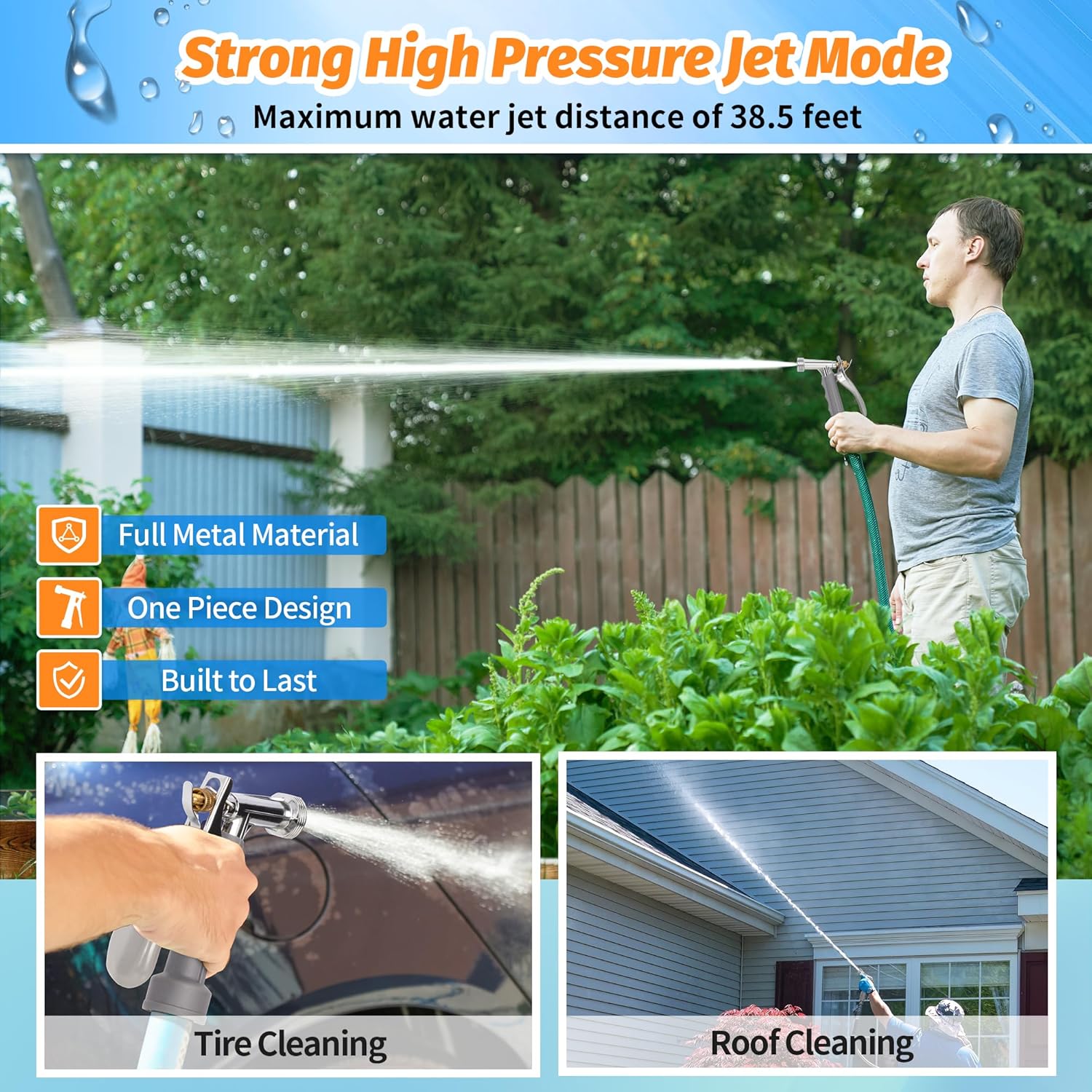 - VERSATILE FOR VARIOUS USES: Our garden sprayer nozzle is suitable for a wide range of applications, including watering flowers, washing cars, cleaning windows, showering pets, and even washing horses. The high-pressure jet setting effortlessly removes stubborn dirt, while the gentle shower setting delicately waters fragile flowers in your garden. It is a versatile tool that you can rely on time and time again, whether at home, in your lawn and garden, or in your garage.