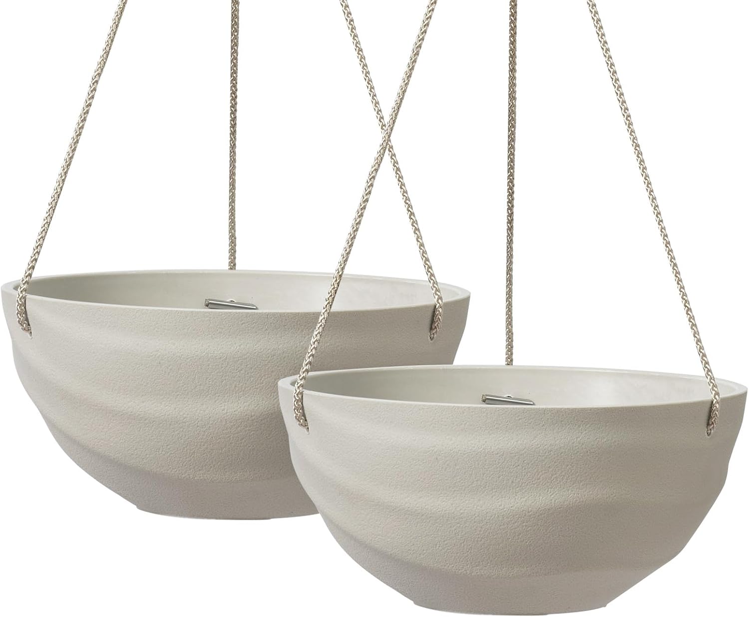 La Jolie Maison 10 Inch Hanging Planters for Indoor Plants, Outdoor Garden Planter Pots with Self-Watering Tray, Oatmeal, Set of 2