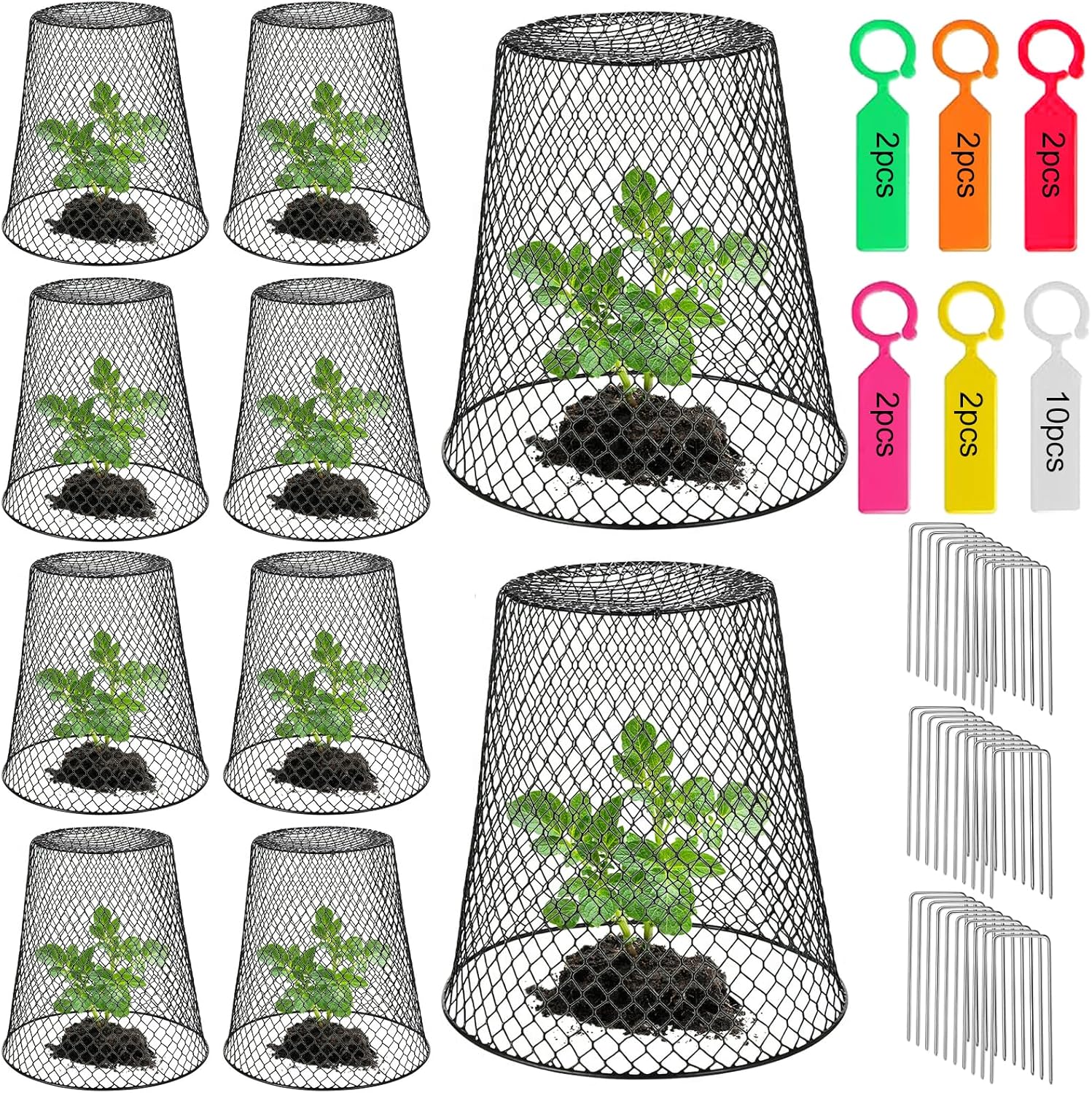 Chicken Wire Cloche Plant Covers - Garden Plant Cloche Metal Heavy Duty Plant Protectors from Animals for Keeping Bunnies Chicken Squirrels Birds Other Out (10, Black)