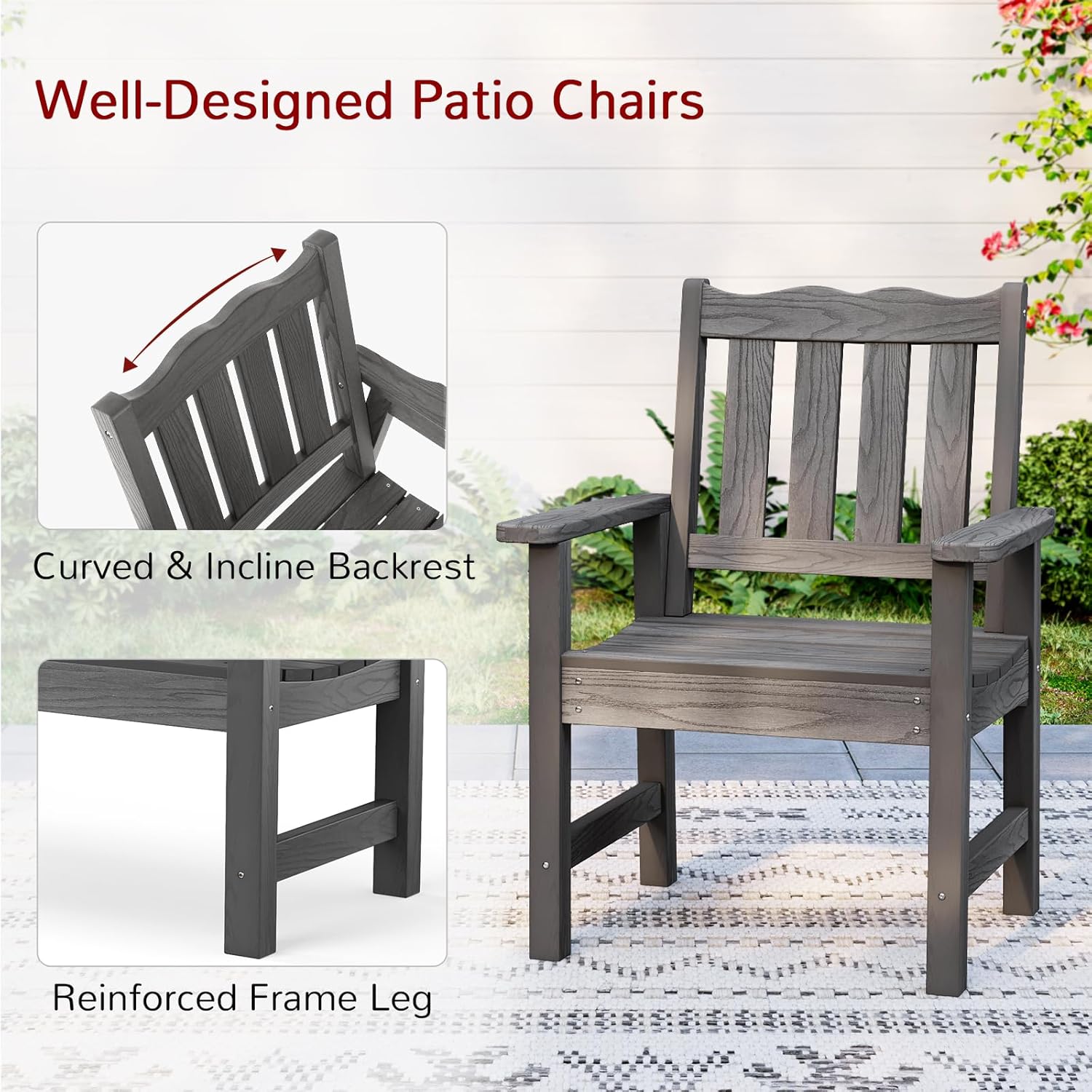 Stoog All-Weather Outdoor & Garden Chair, Patio Dining Chairs with 400 lbs Weight Capacity, Curveback Patio Chair for Backyard, Porch, Pool and Deck, Grey