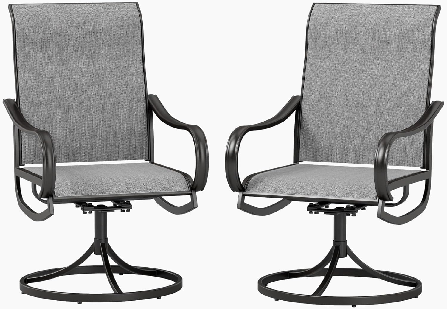 PHI VILLA Patio Swivel Dining Chairs Set of 2, Outdoor Chair with Textilene Mesh Fabric & Black Metal Frame for All Weather Outdoor Lawn Garden Poolside (Gray)