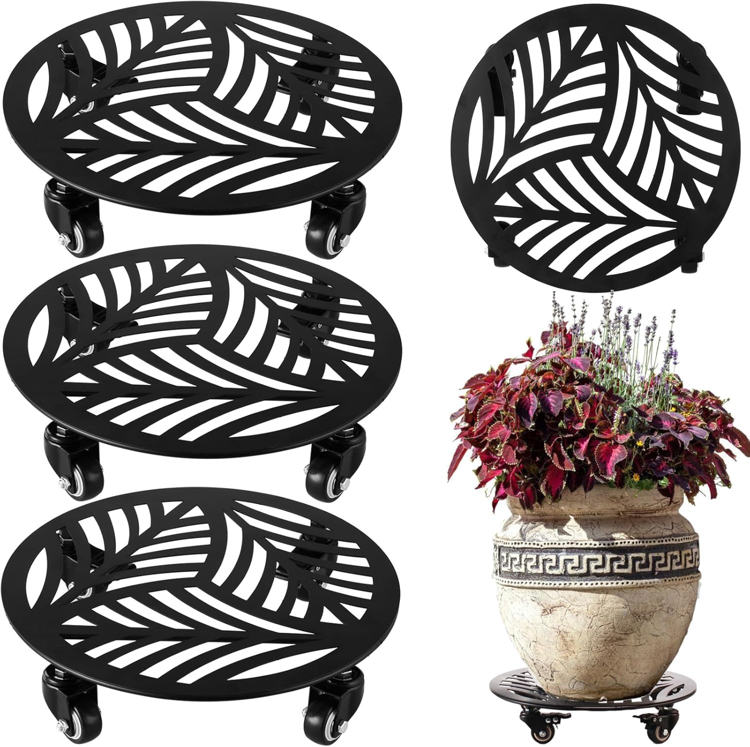 - Unique Design: The package will come to you with 3 packs of 13” large metal plant caddy, which is special designed like leaf pattern. It holds the heavy plant pots while add an addition to your home decor.