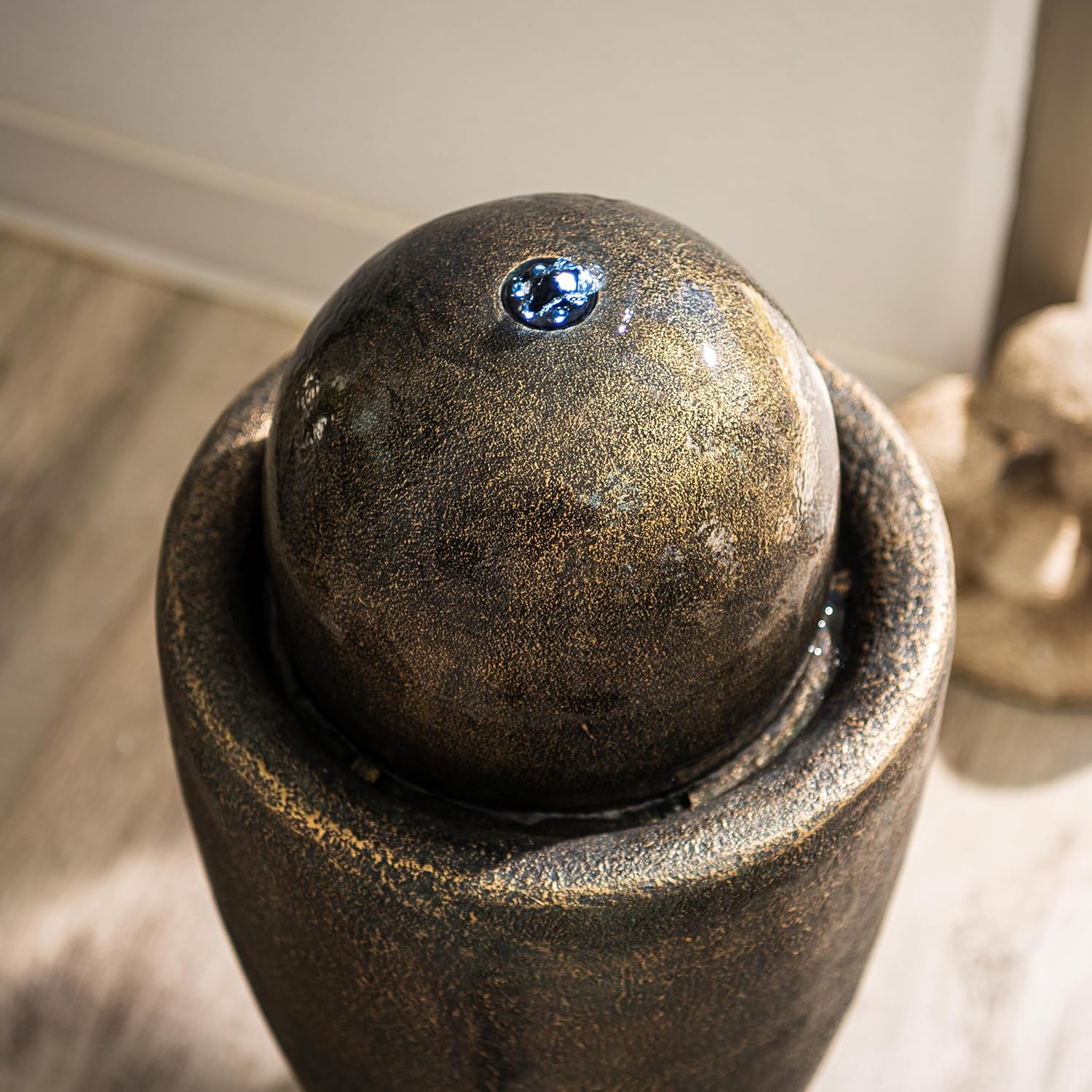 - GREAT SIZED AND LONG-LASTING: This ball water fountain decor measures 25.98"H x 11.81"L x 11.81"W, cord length 5 meters, made of durable Fiber Stone that ensures high quality for years. Also, water capacity of the fountain is 6.4 L.