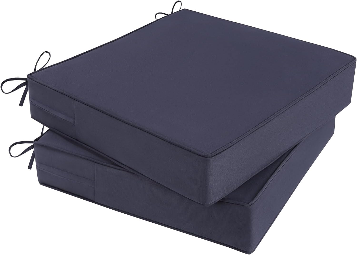 - PERFECT SIZE: Outdoor chair cushion set includes 2 cushions. Cushions measure: 22 inch (W) 22 inch (D) 4 inch (H). Fits most standard size outdoor chairs. Since the outdoor cushions are vacuum-packed, it may take 24-51 hours for the cushion foam to fluff back up after opening the vacuum bag