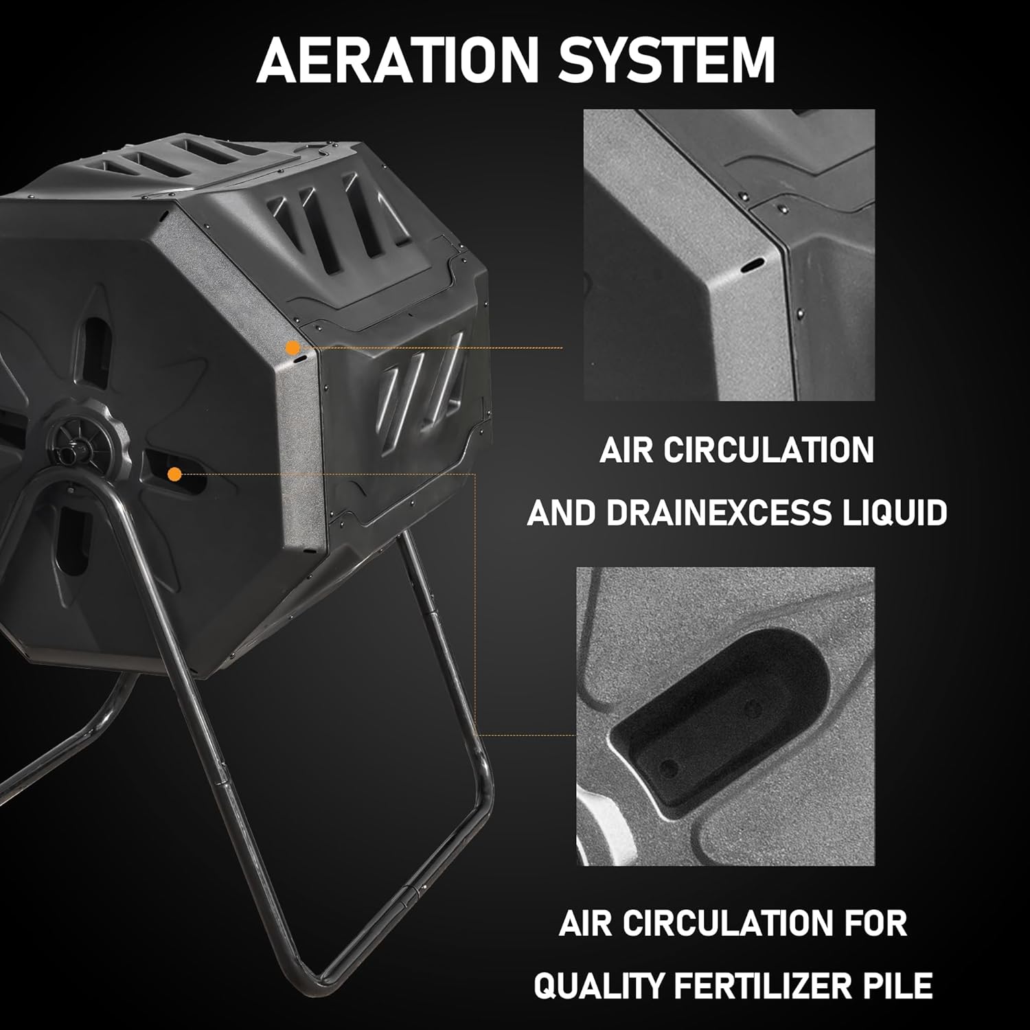 - Efficient Aeration System: The compost turners are designed with aeration holes and deep fins to enhance airflow, allowing ample oxygen to blend with the compost. This helps break down clumps and accelerates the composting process!