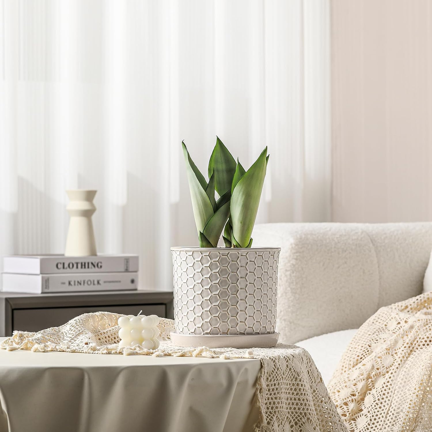 - Unique Honeycomb Embossed: This planter is creamy white with honeycomb relief on the surface. Suitable for modern, farmhouse or mid-century home styles