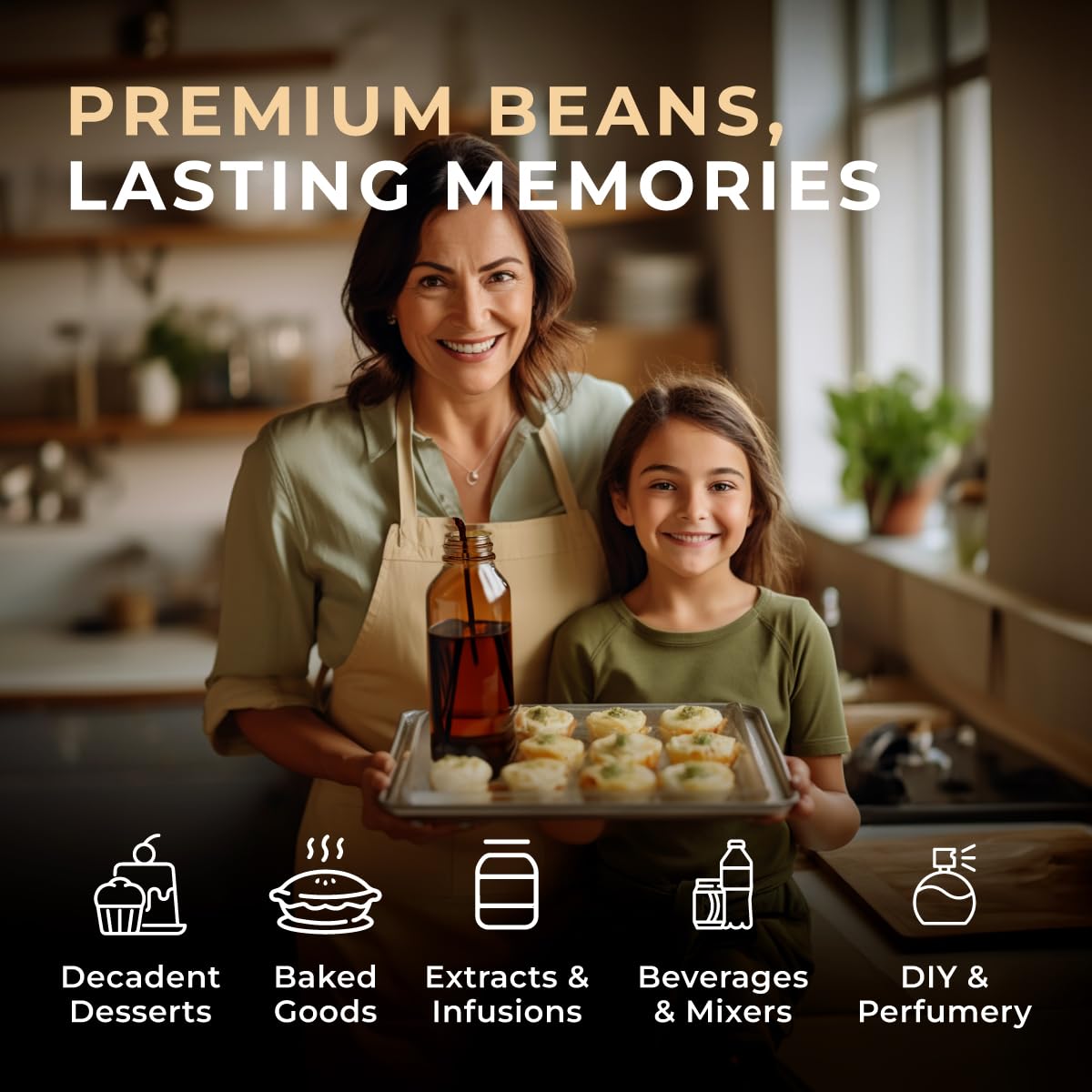 - Easy DIY Homemade Vanilla Extract. Slice through lengths of the vanilla bean pods to create vanilla extract. We suggest 6-8 pods for richer flavor. Immerse vanilla beans grade A+ pods in vodka or preferred spirits. Infuse for 8-16 weeks, and voila!