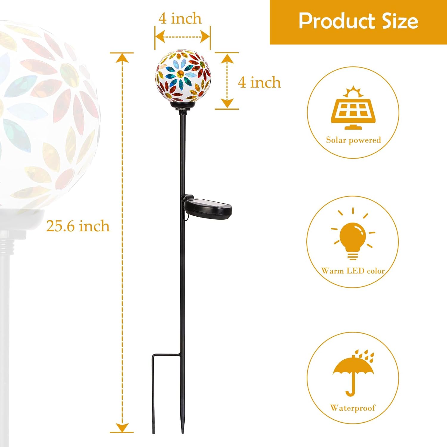 - ★Perfect choice: Whether there is sunshine or not, this fantastic Mosaic Solar Lights will add energy and color to any space. Outdoor garden stakes will make a wonderful addition to your collection of outdoor accessories, or a perfect gift for someone who loves to relax outside.