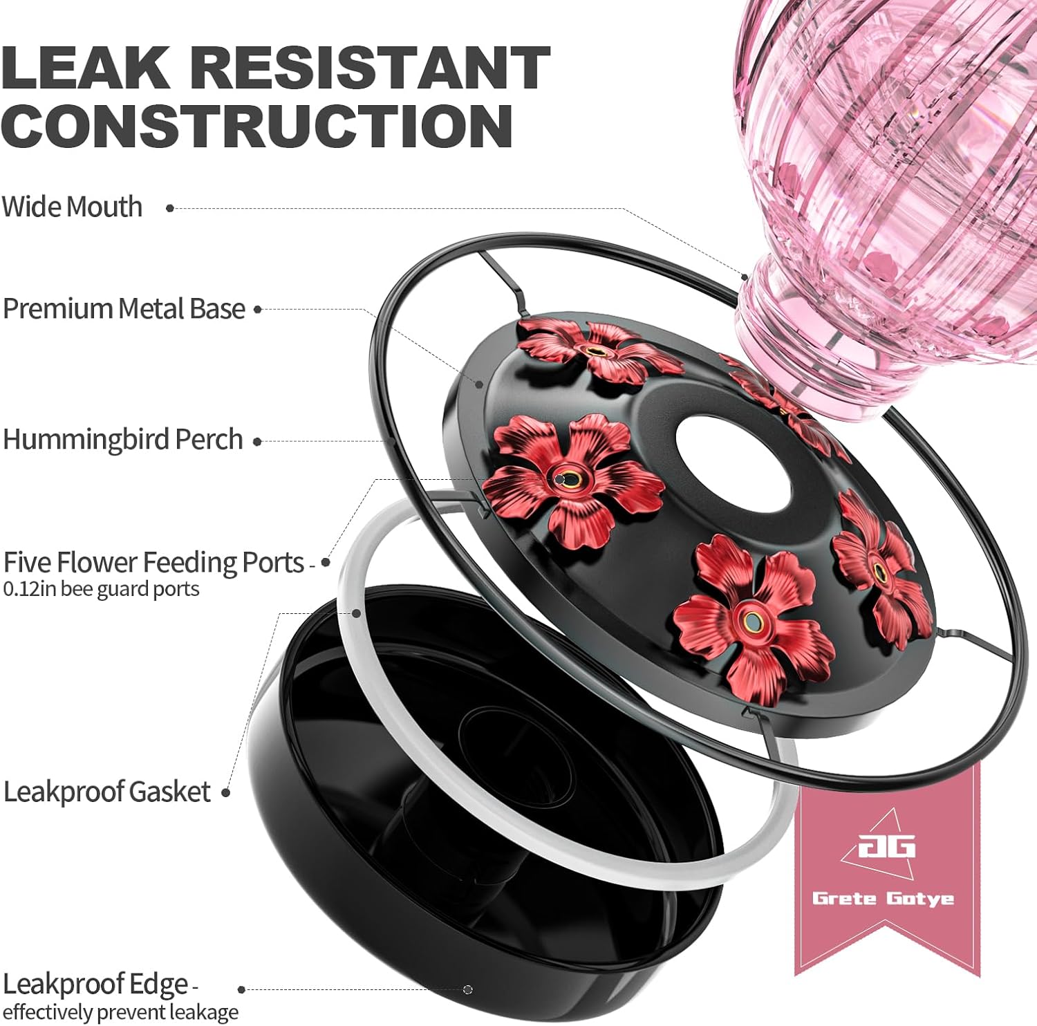 - LEAKPROOF FUNCTION - Build-in durable gasket, unique design makes base connection proper and seamless, even when the hummingbird feeders for outdoors hanging is shaken by wind or birds perching on it. After filling the container and screwing it onto the base, flip it over and hang it on a tree/deck hook/shepherd's hook/hangers/window hook.