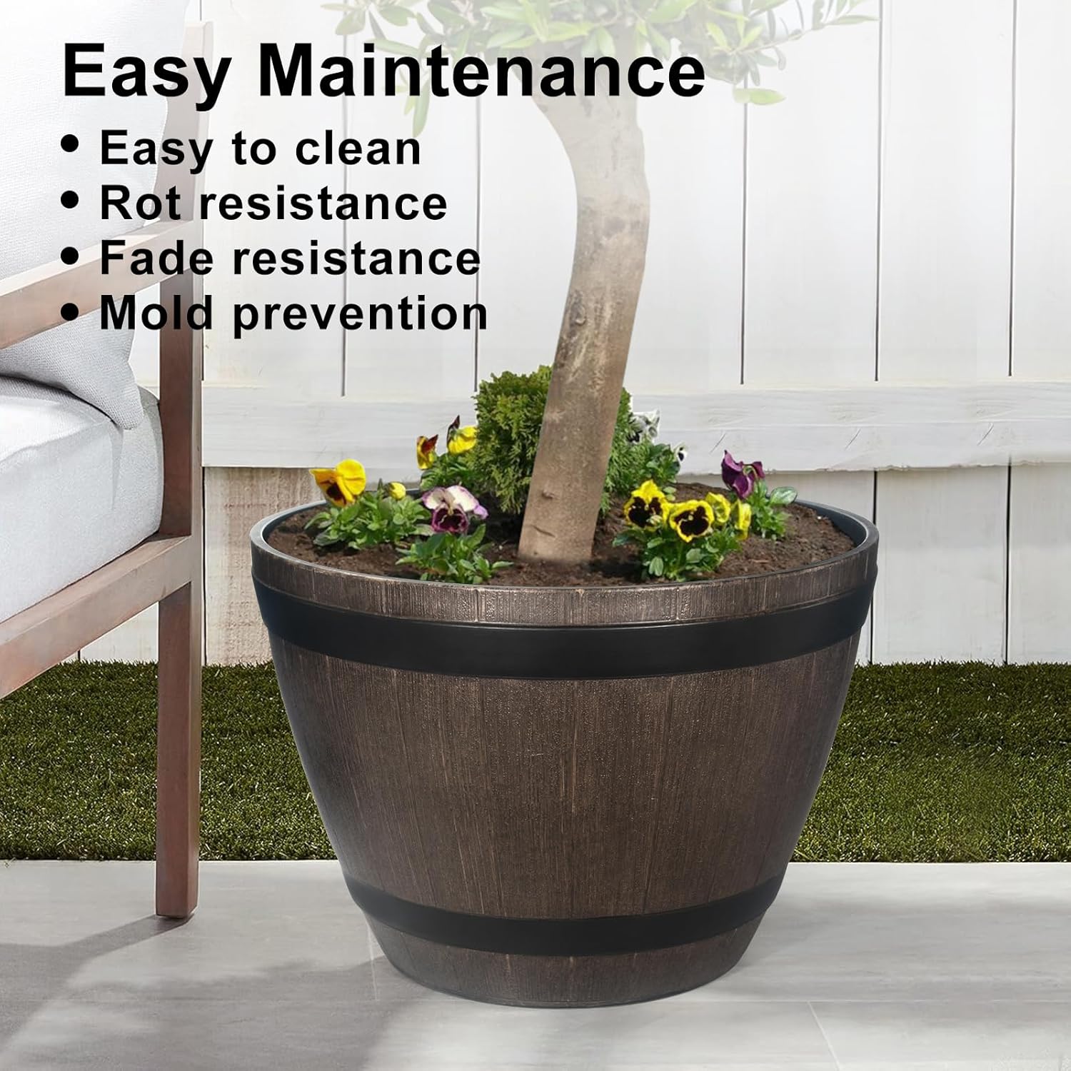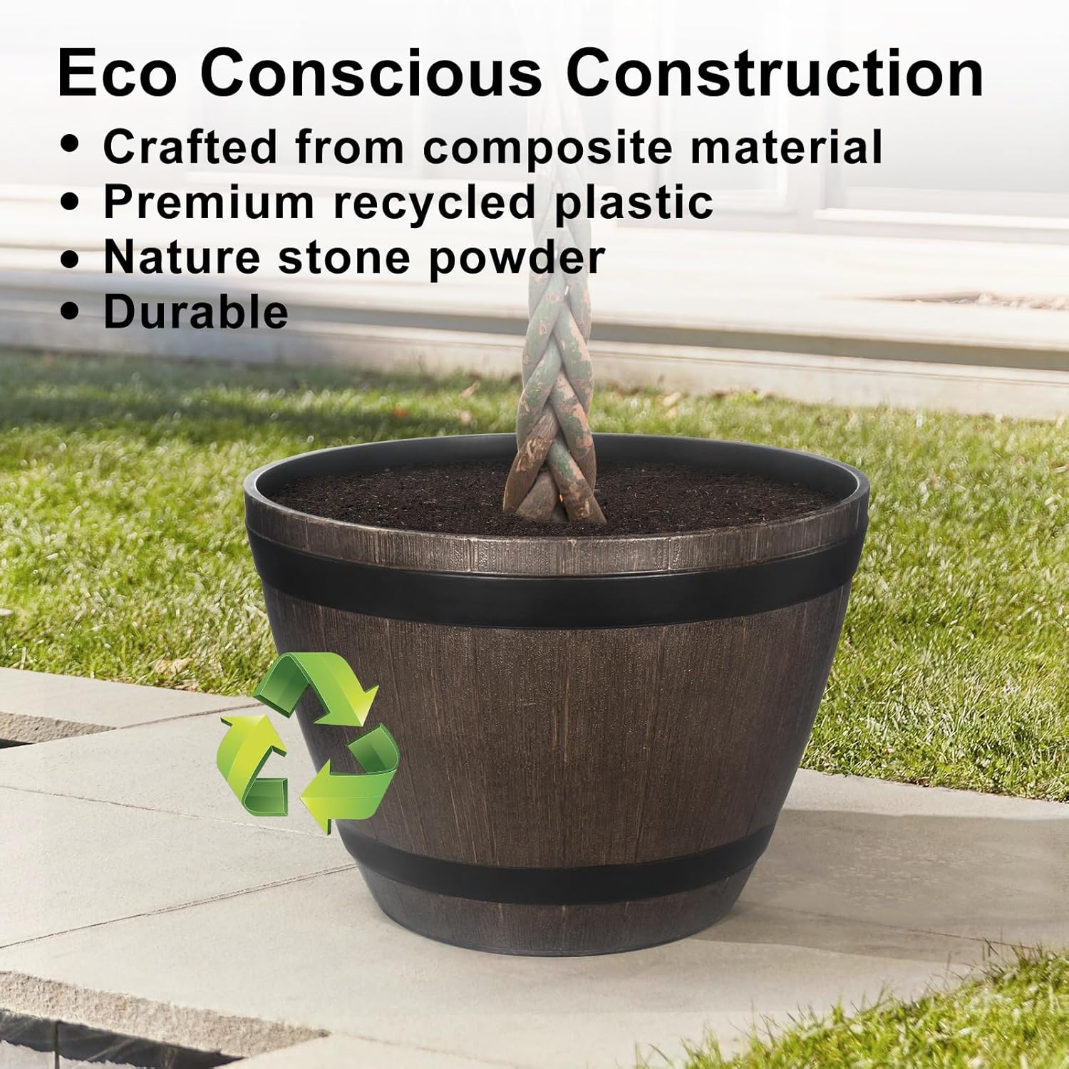 Large Whiskey Barrel Planter for Outdoor Plants - Flower Pots Garden Wine Barrel Planter Outdoor - 21" D x 15" H