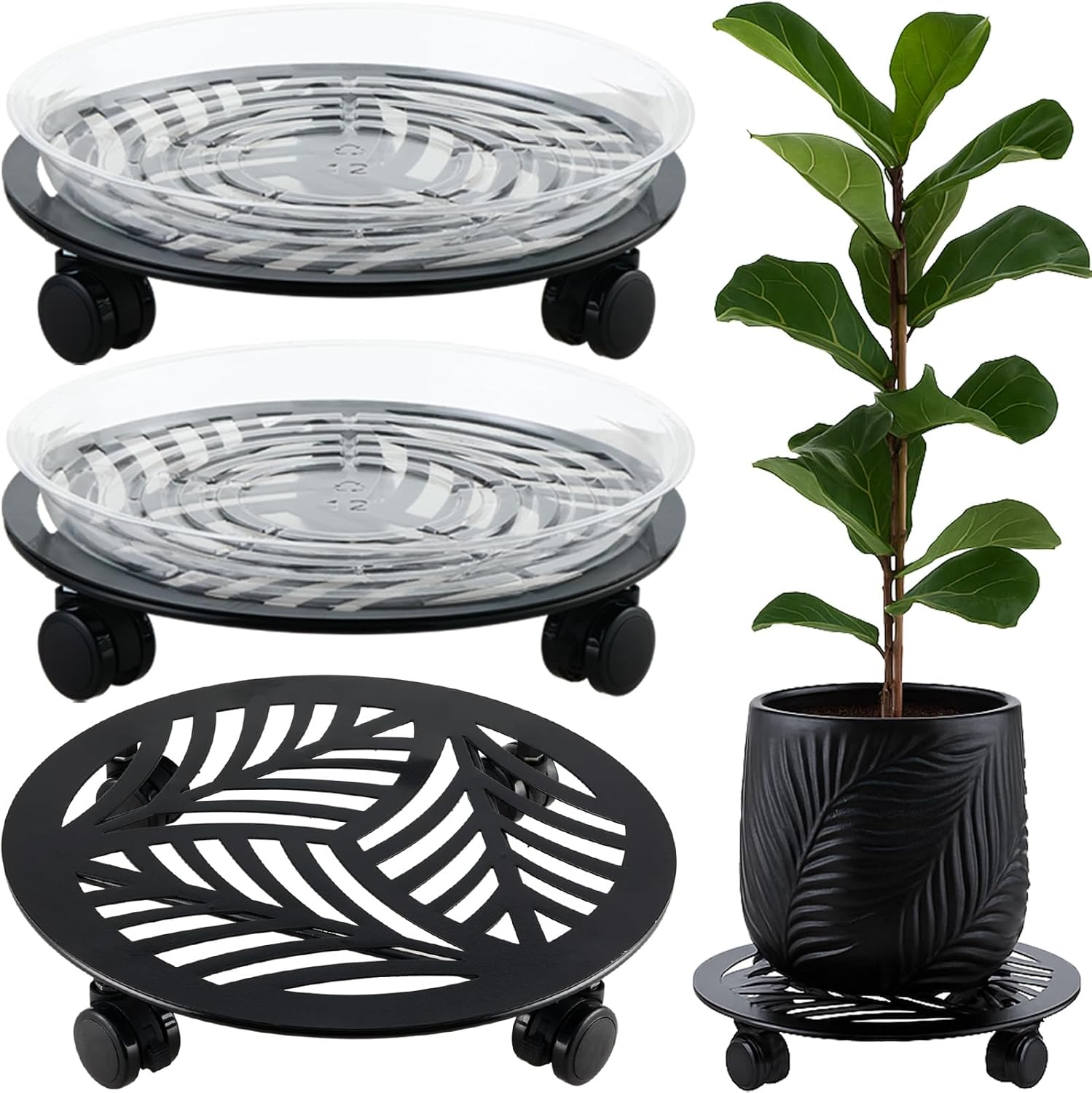 - Clear Plant Saucers & Protect Your Floor: The 3 packs of clear plastic plant saucers help catch the water and prevent getting wet when watering. These plant saucers on wheels will help keep a clean floor and avoid water stains. Each wheeled metal plant caddy holds your heavy plant pots while add an addition to your home decor.