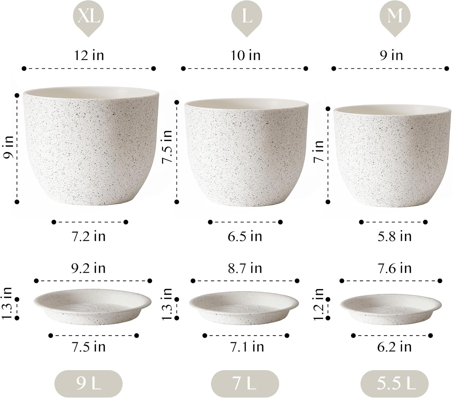 - LIGHTWEIGHT YET DURABLE CONSTRUCTION: Crafted from premium, eco-friendly polypropylene, these pots offer the look of ceramic while being lightweight, impact-resistant, and odor-free. They won’t crack, warp, or fade over time.