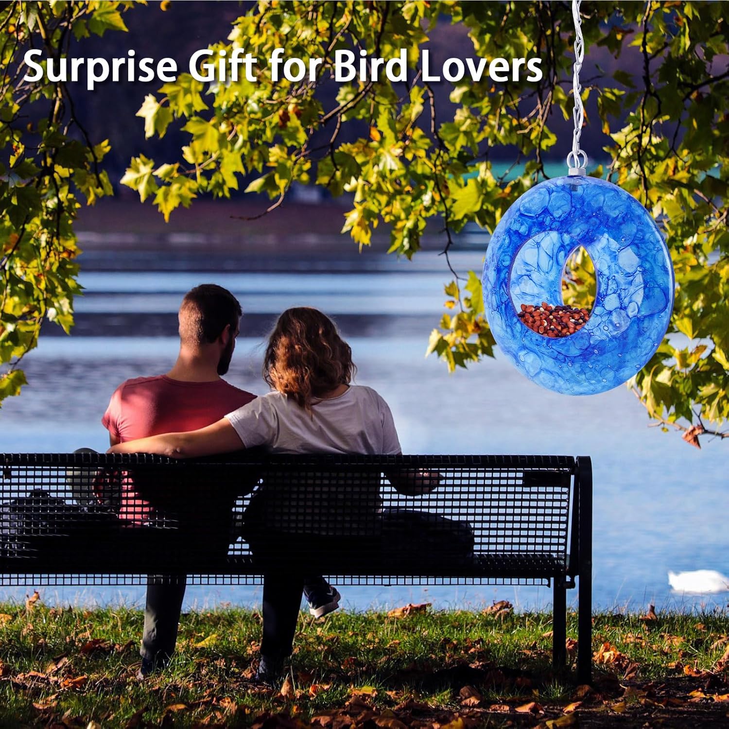 Yinns Mosaic Bird Feeders for Outside Hanging Fly Through Bird Feeder with Round Shape Solar Birdfeeder for Yard Garden Decor Bird Lvoers Gifts, 8-Inch Bule