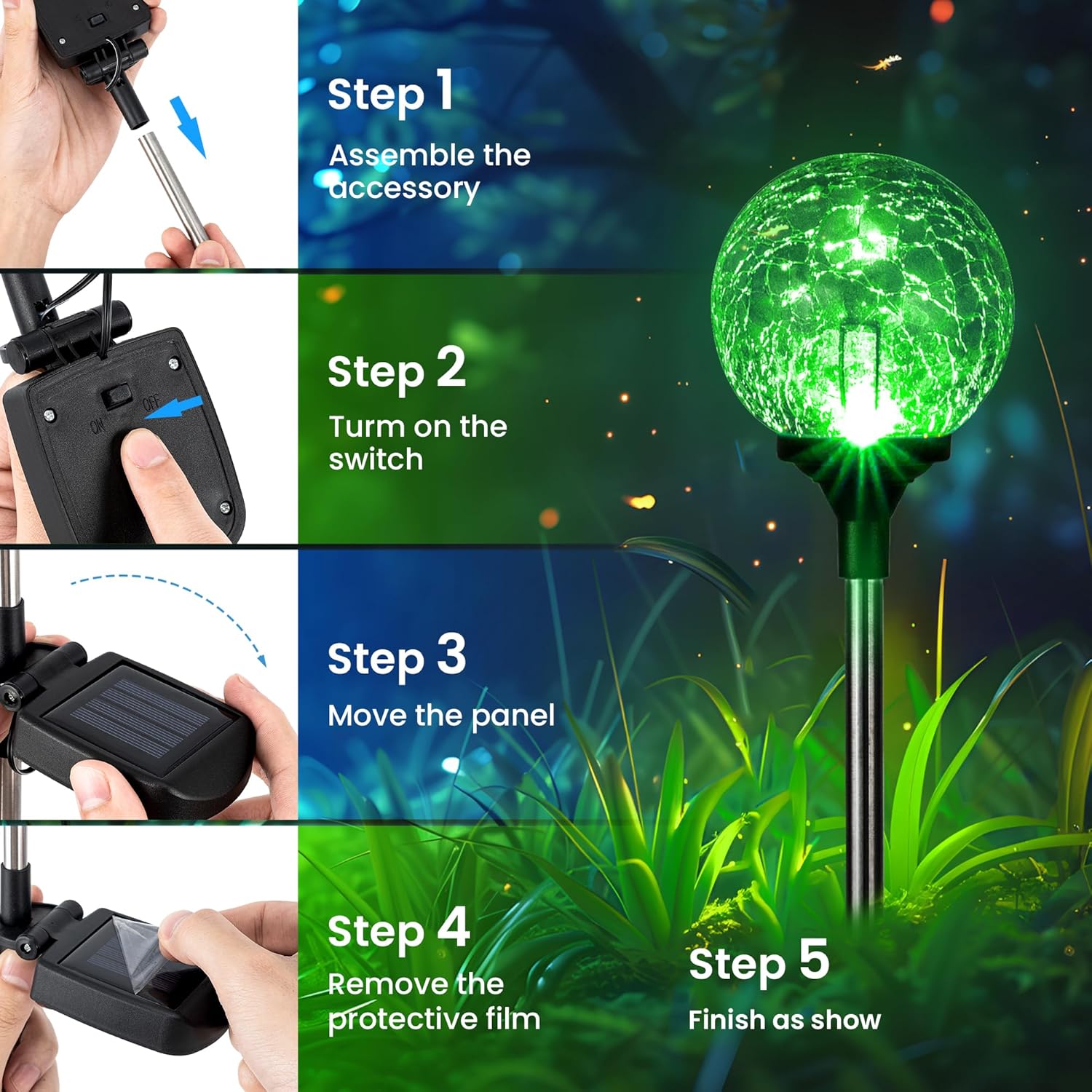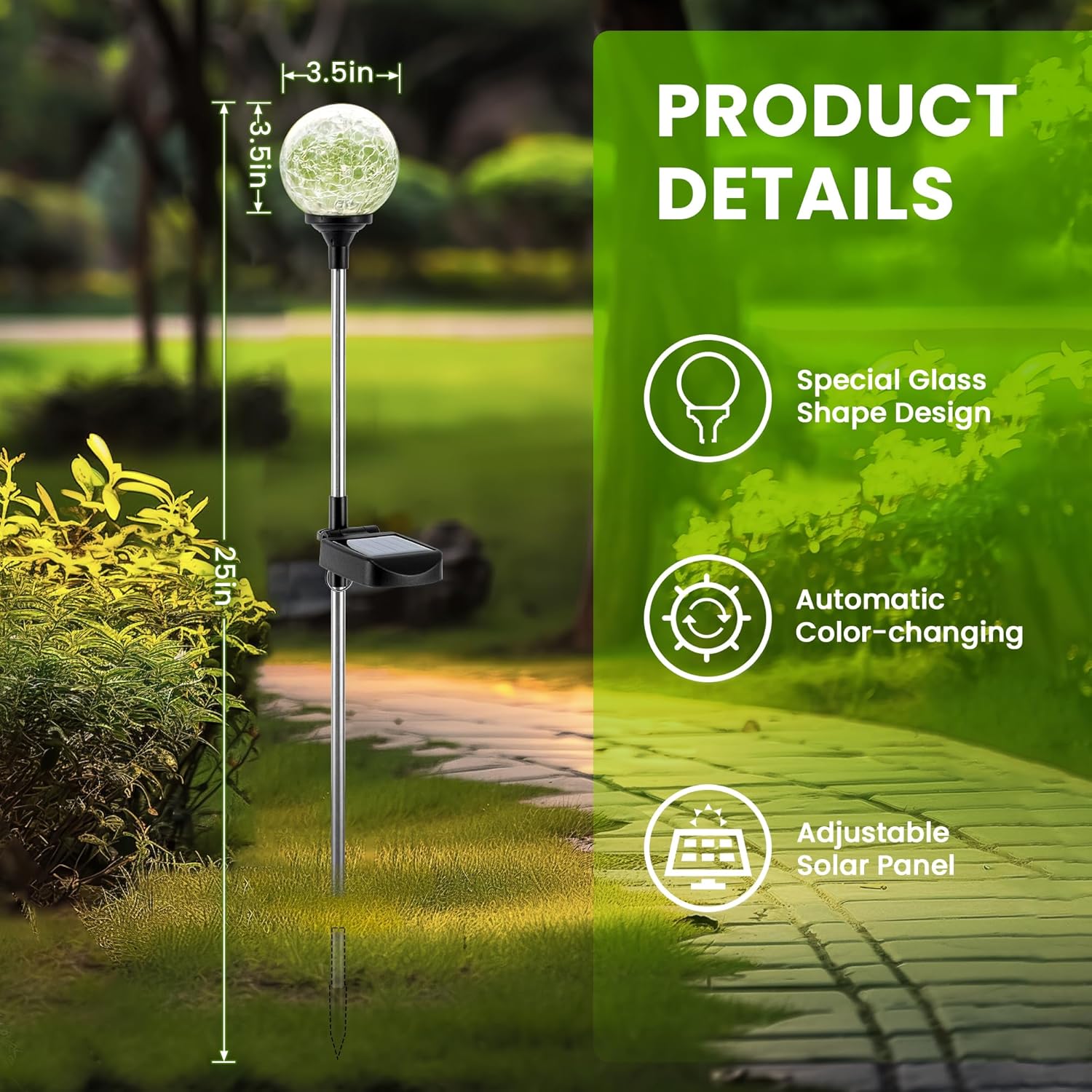 GIGALUMI Solar Garden Lights Outdoor Decorative for Yard 3 Pack, Solar Globe Lights Outdoor Waterproof, Multi-Colored Changing Garden Globes Cracked Glass Ball with LED Lights