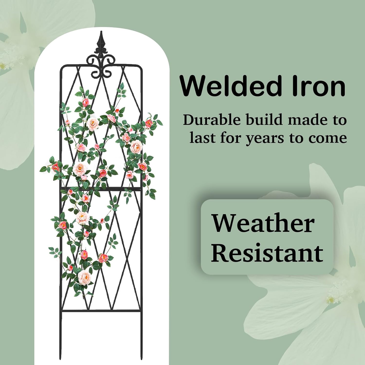 - Heavy Duty & Elegant Decor: Our tall vine trellis is welded with thickened metal steel, hand-painting black powder coating and weathered finish to make it can be used for years to come. Ideal for summer to support flowering vines, and in fall or winter.The vertical section with aesthetic design adds a stylish and elegant touch to your yard. Our decorative garden trellis for climbing plants outdoor comes in decorative patterns, adding interest and variety to your garden, balcony, yard, or patio