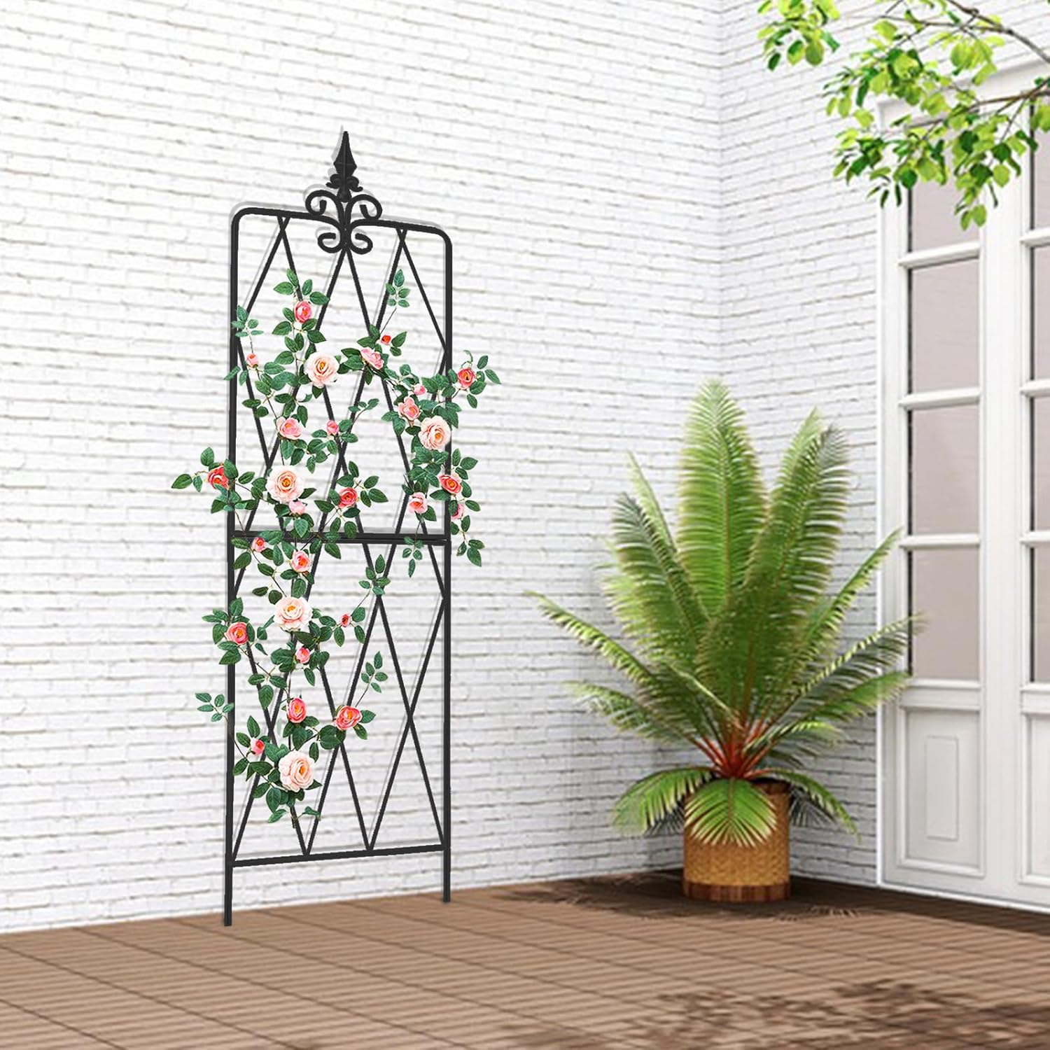 - Easy Assembly:This rose trellis outdoor can be used as a space divider can be stood freely in the garden, stake on the potted plants, or lean on the wall as a garden decor, quickly meet your specific gardening needs. With dimensions of 15 inches side to side by 62 inches tall, this heavy-duty trellis panel offers a secure anchoring system that will happily support large plant material. You just simply insert the lower spiked legs into the ground and connect both parts with screws