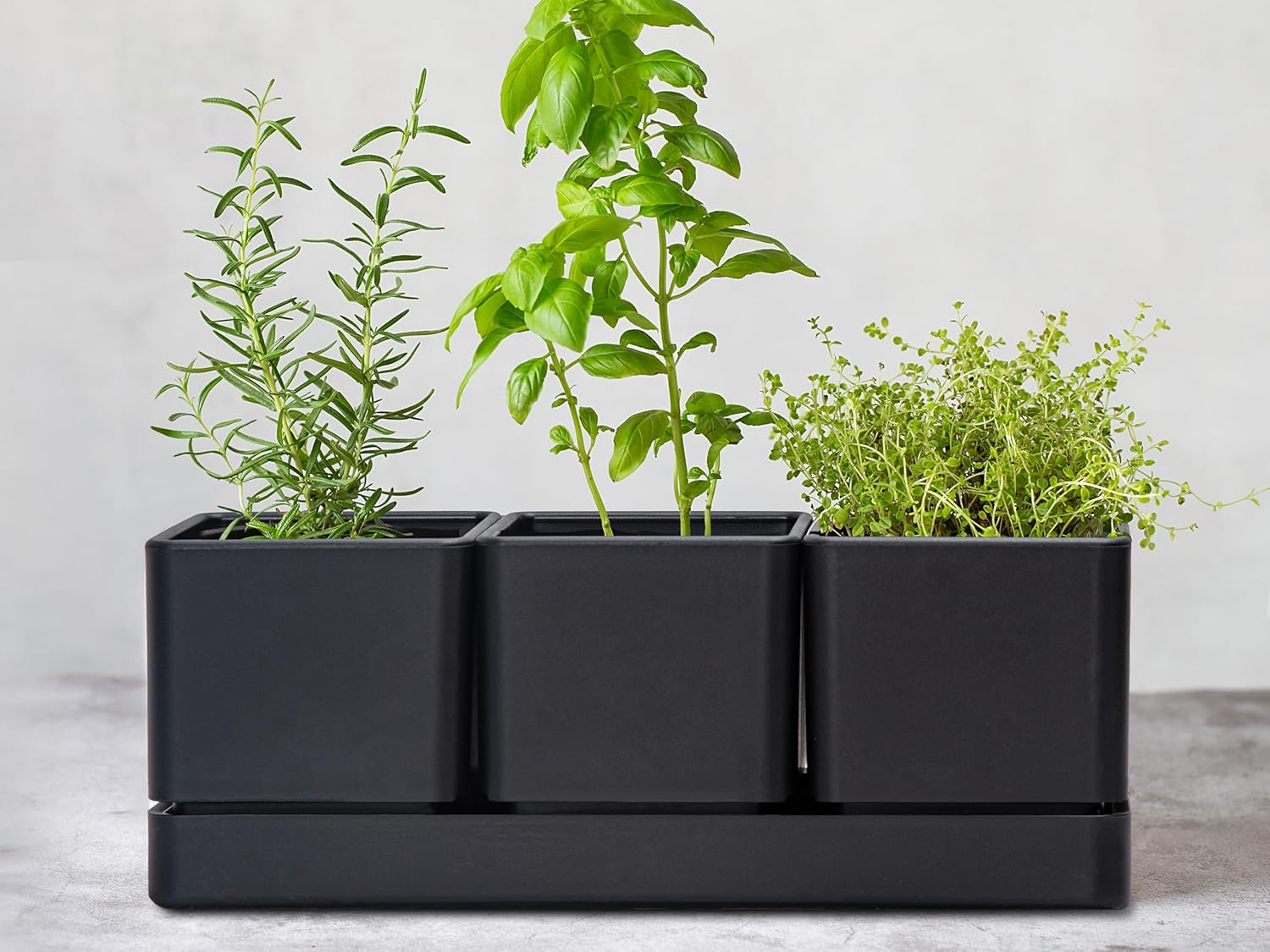 - Dimensions: Set of three herb pots and tray. Each herb box is 4” W x 4.3” H. Tray: 11.8” L x 4.3” W x 1.2” H, great size for planting herbs, vegetables and cactus etc.