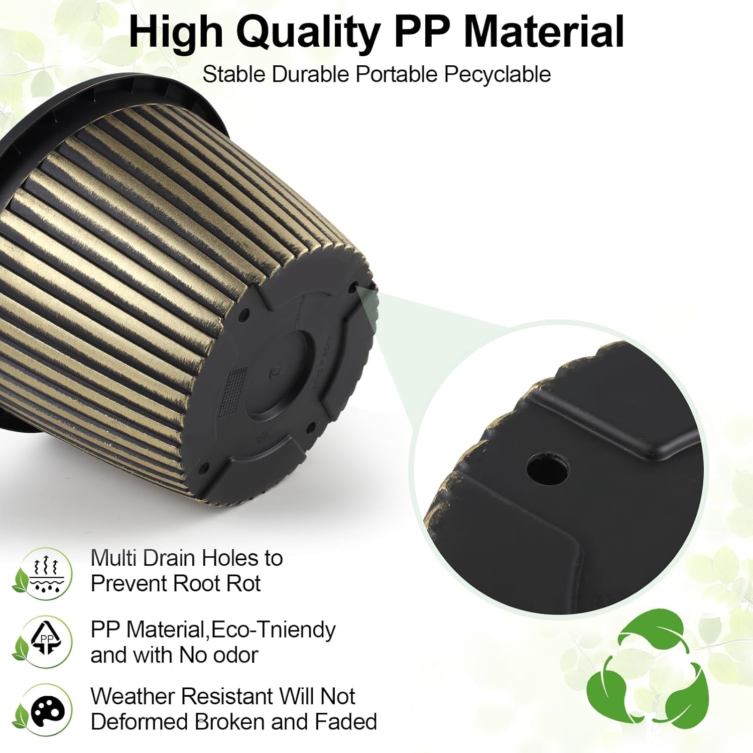 - 【MODERN STYLE PLANTERS】 Indoor planters with saucers provide a unique,nice style in ribbed design which gives an understated elegance that will enhance the beauty of your plant. These 12 inch plant pots are available in red-brown &blue-green & gold finished with a black antique stain. Plastic flower pots would be a beautiful addition to anyone’s deck or sunroom or house!
