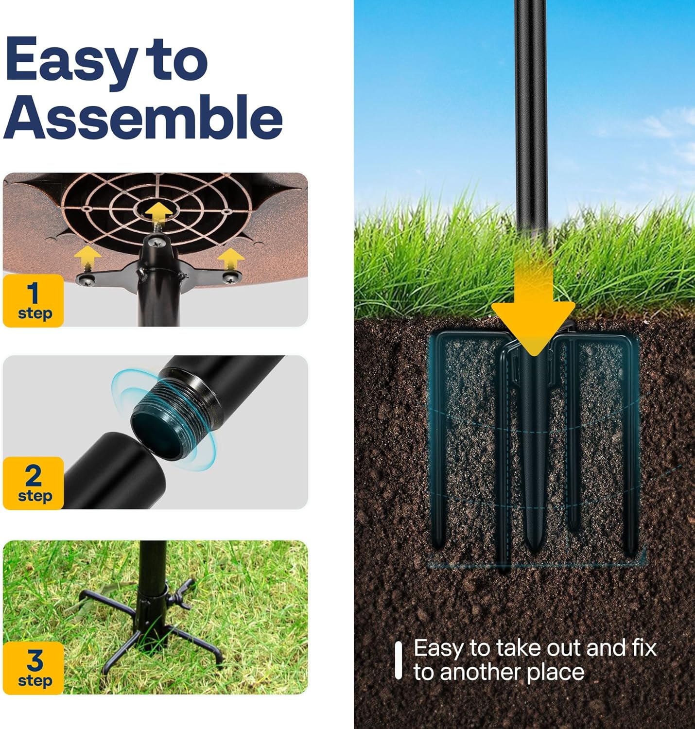 - EASY TO USE: The clear manual makes assembly easy and you simply tighten the support bar to the bird bath base using the wingnut; Place the solar fountain in water—sunlight powers automatic spraying; To change patterns, attach nozzle, connectors, and fountain in sequence; Four fixing rods anchor the pump, preventing float and boosting spray