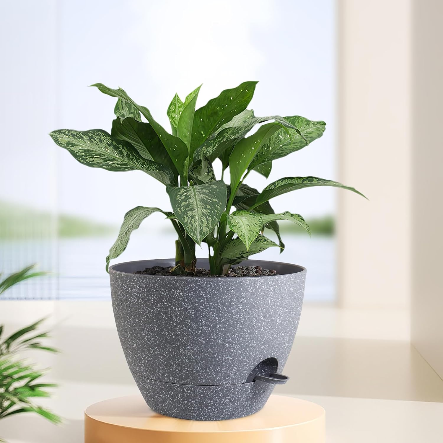 12 inch Large Self Watering Pots, Plant Pots with Mesh Drainage Holes for Indoor Outdoor Plants, Plastic Planters with Deep Reservoir for Garden House Flower Plants, Speckled Grey