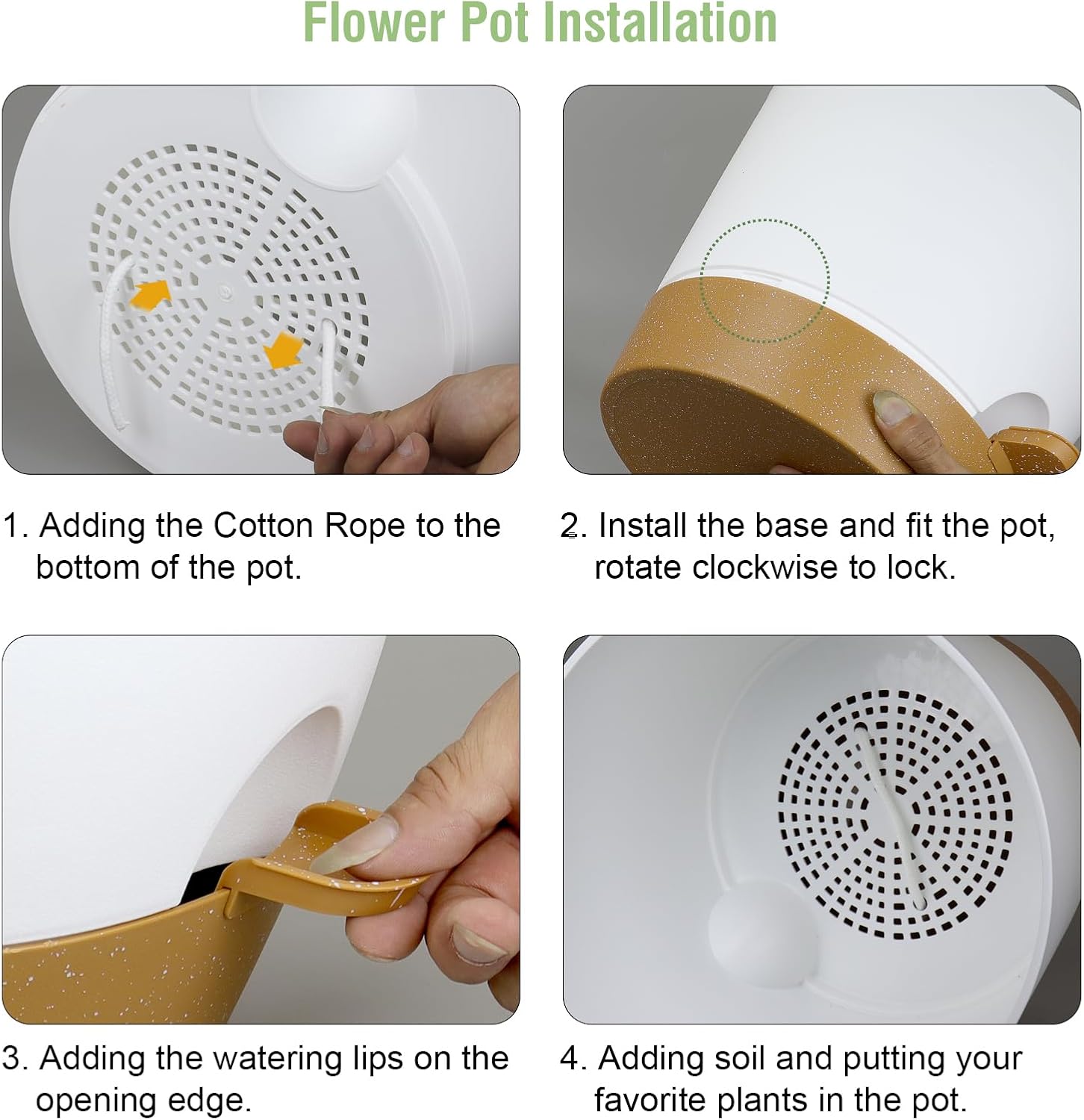 - 【Self-Watering Design】 Self-watering pots is includes a water reservoir at the bottom of the planter. This flower pots automatically supplies water to your plants as needed by a cotton rope, reducing the frequency of watering and ensuring your plants never go thirsty. The reservoir design also helps maintain a consistent moisture level, fostering optimal growth conditions.