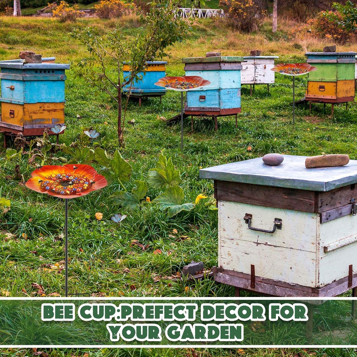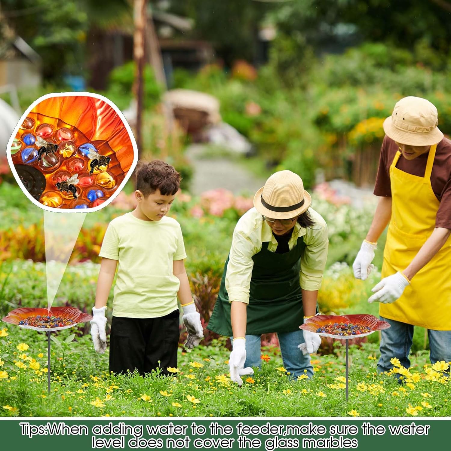 - Aesthetic Appeal: the bee water feeder isn't just functional, it doubles up as a beautifying element for your garden; Its vibrant floral pattern enhances your garden aesthetics, adding a lively touch amidst your flora and fauna