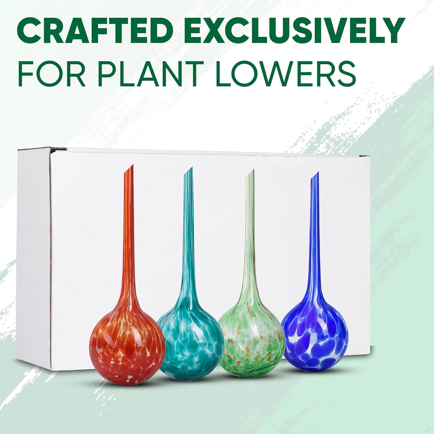 Plant Watering Globes Set of 4 - Large Self Watering Globes for Indoor & Outdoor Plants - Multicolored, Automatic, Glass Watering Bulbs for Daily Use, Plant Watering Devices