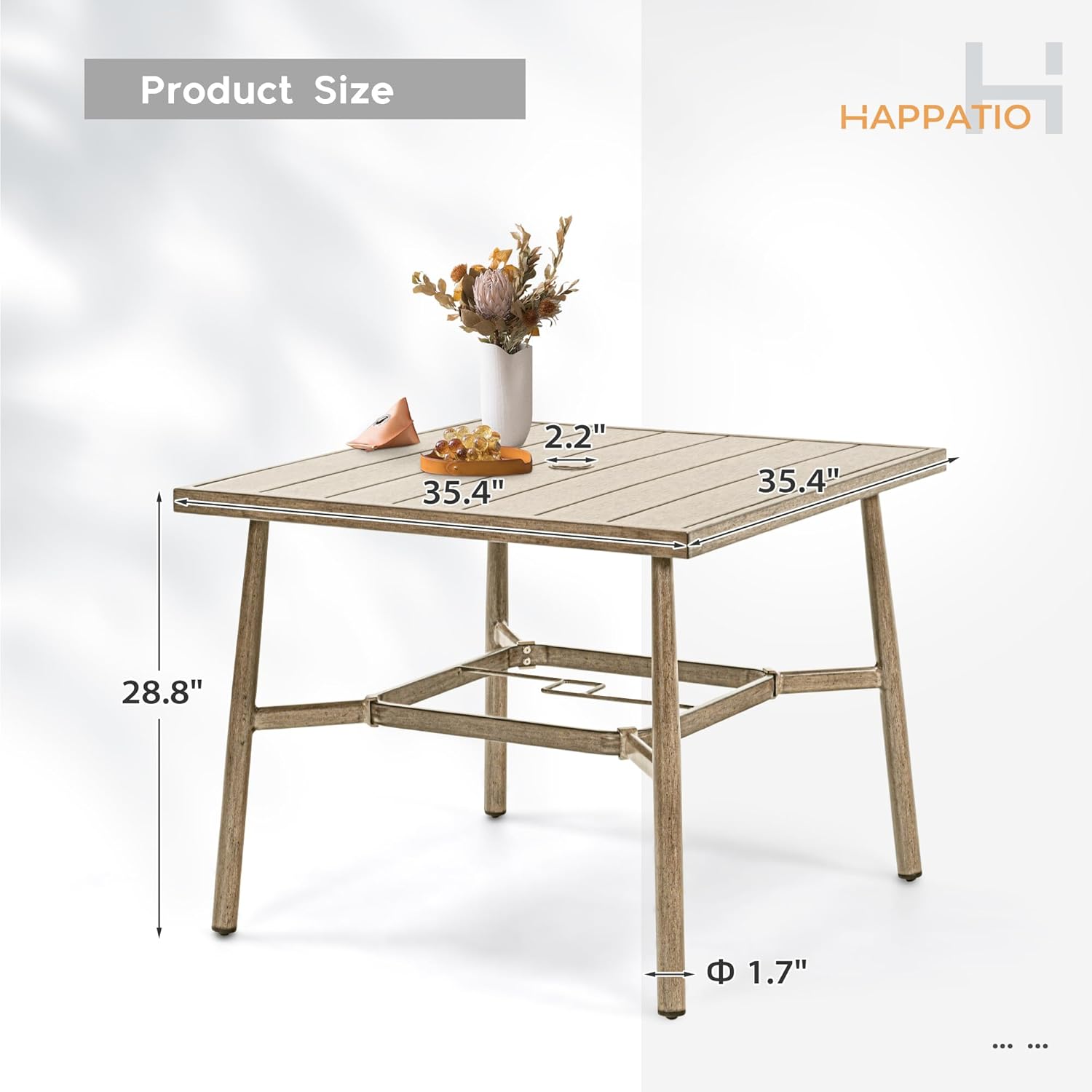 - Practical Dining Table for 4: This 35.6" square outdoor dining table comfortably seats 4 people, so you can enjoy leisurely meals with your family and friends. It's the perfect addition to your backyard, poolside, balcony, garden, or deck, creating a cozy outdoor hangout spot.