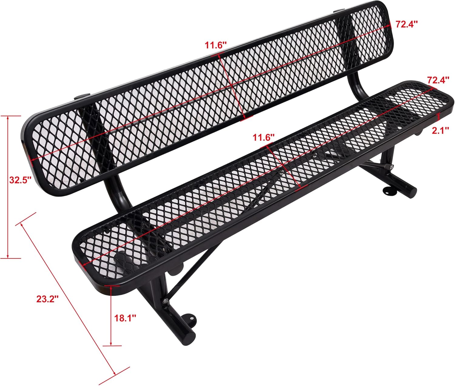 - Large Size Metal Bench: 3 sizes for you to choose - 4FT/6FT/8FT. The garden bench provides enough space for 2-6 people to sit comfortably. This outdoor bench provides comfortable sitting for gardens, porches, parks, patios, lawns.