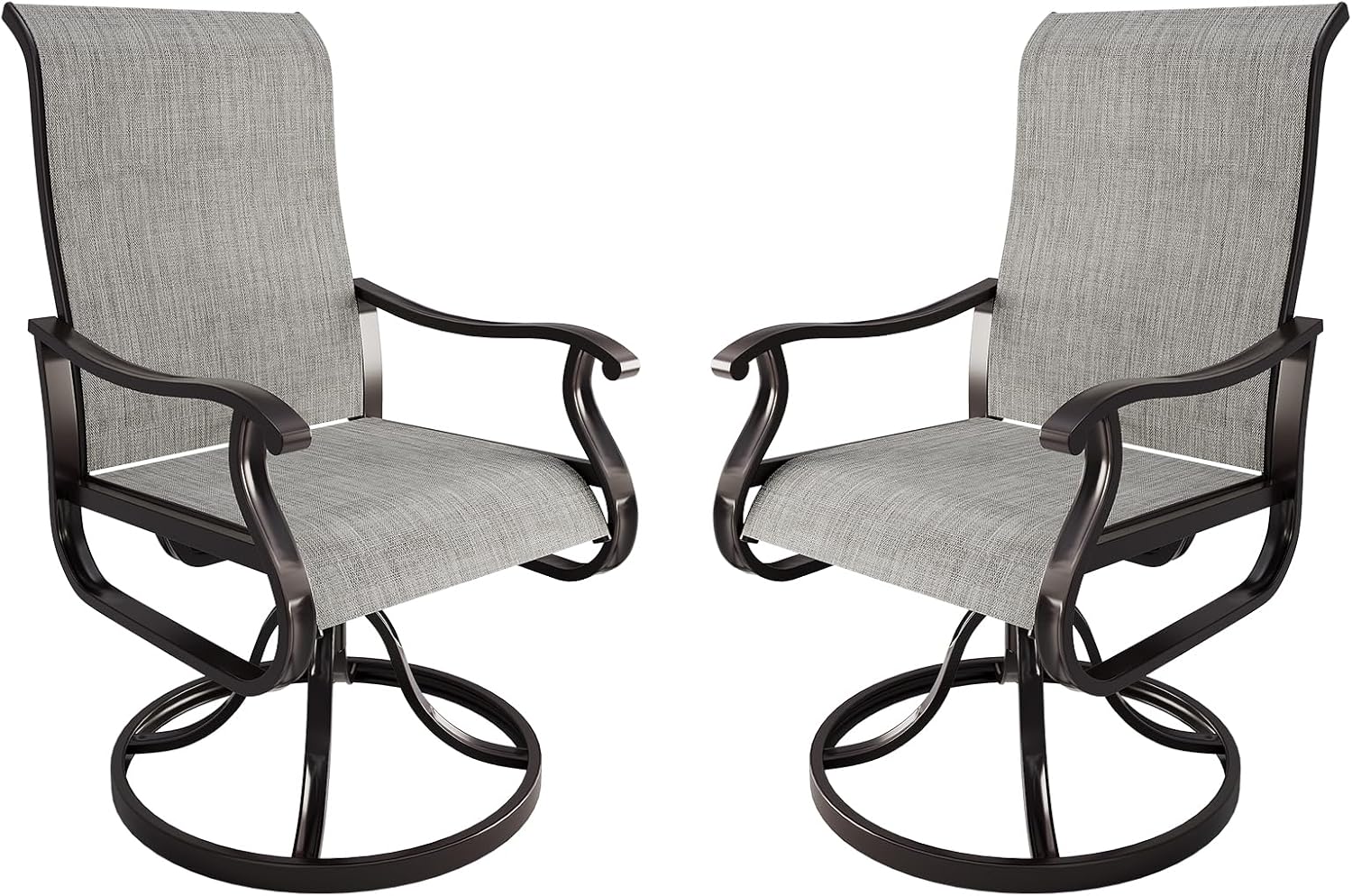 Amopatio Patio Swivel Chairs Set of 2, Outdoor Swivel Rocker Dining Chairs with All Weather Textilene High Back & Metal Frame, for Backyard Deck Lawn, Light Gray