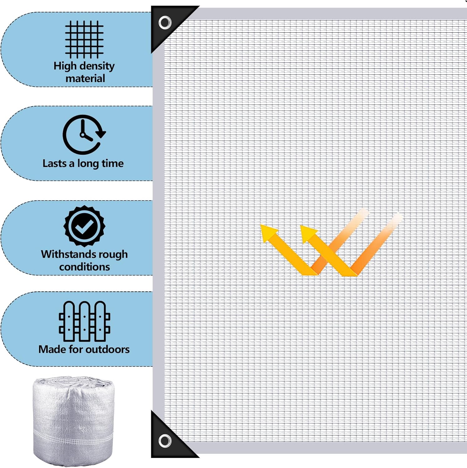 - Well Ventilated Design: while giving you effective sun and head protection, this 99% shade cloth also allows increased air circulation, attributing to its knitted mesh design; Apart from providing excellent shading effects, it also promotes ventilation, making your shaded area breathable and comfortable in hot weather