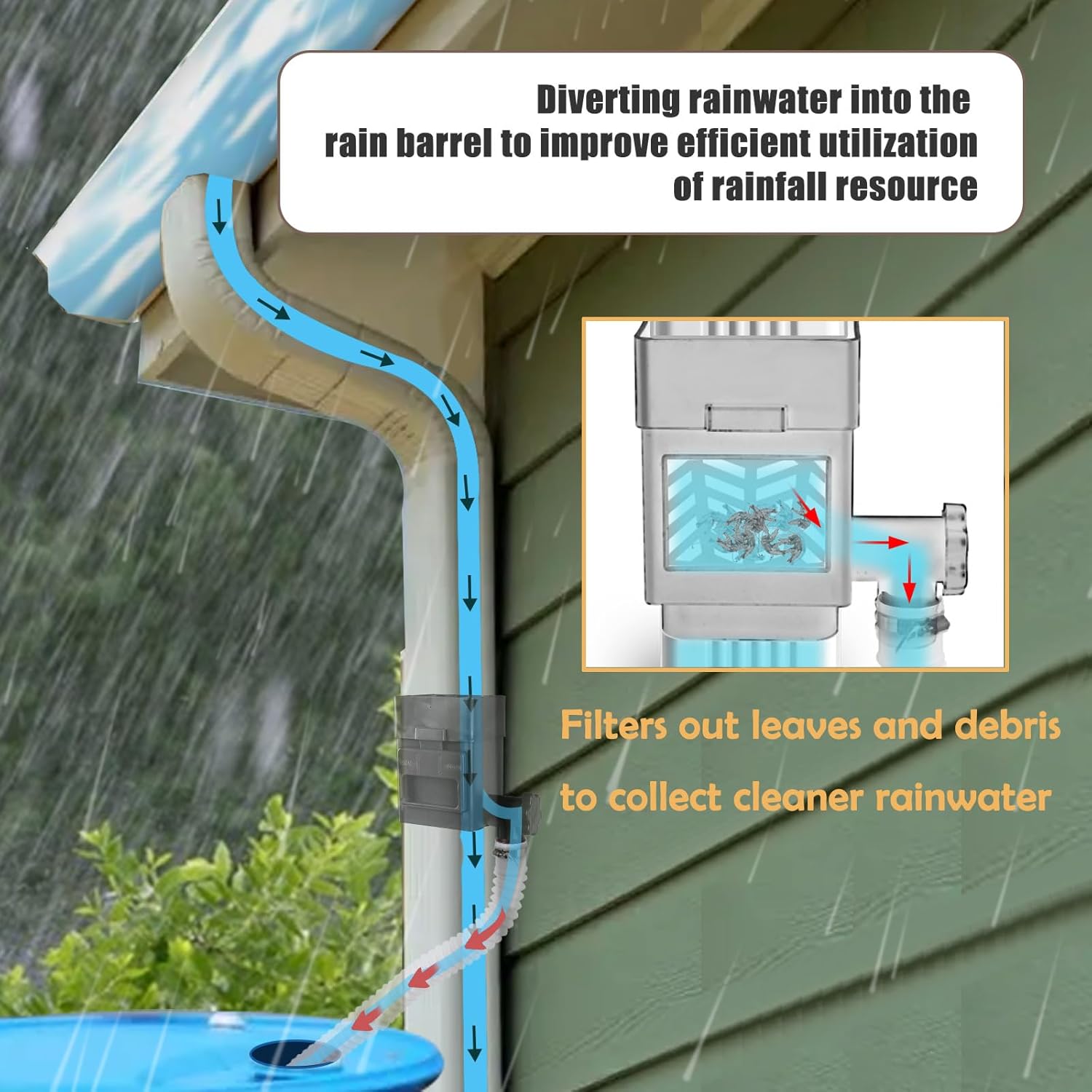 Rain Barrel Diverter Kit, Downspout Diverter Fits for 2"x 3" or 3"x 4" Standard Downspout, Rainwater Collection System with Adjustable Valve and Filter,5ft Hose(Black)