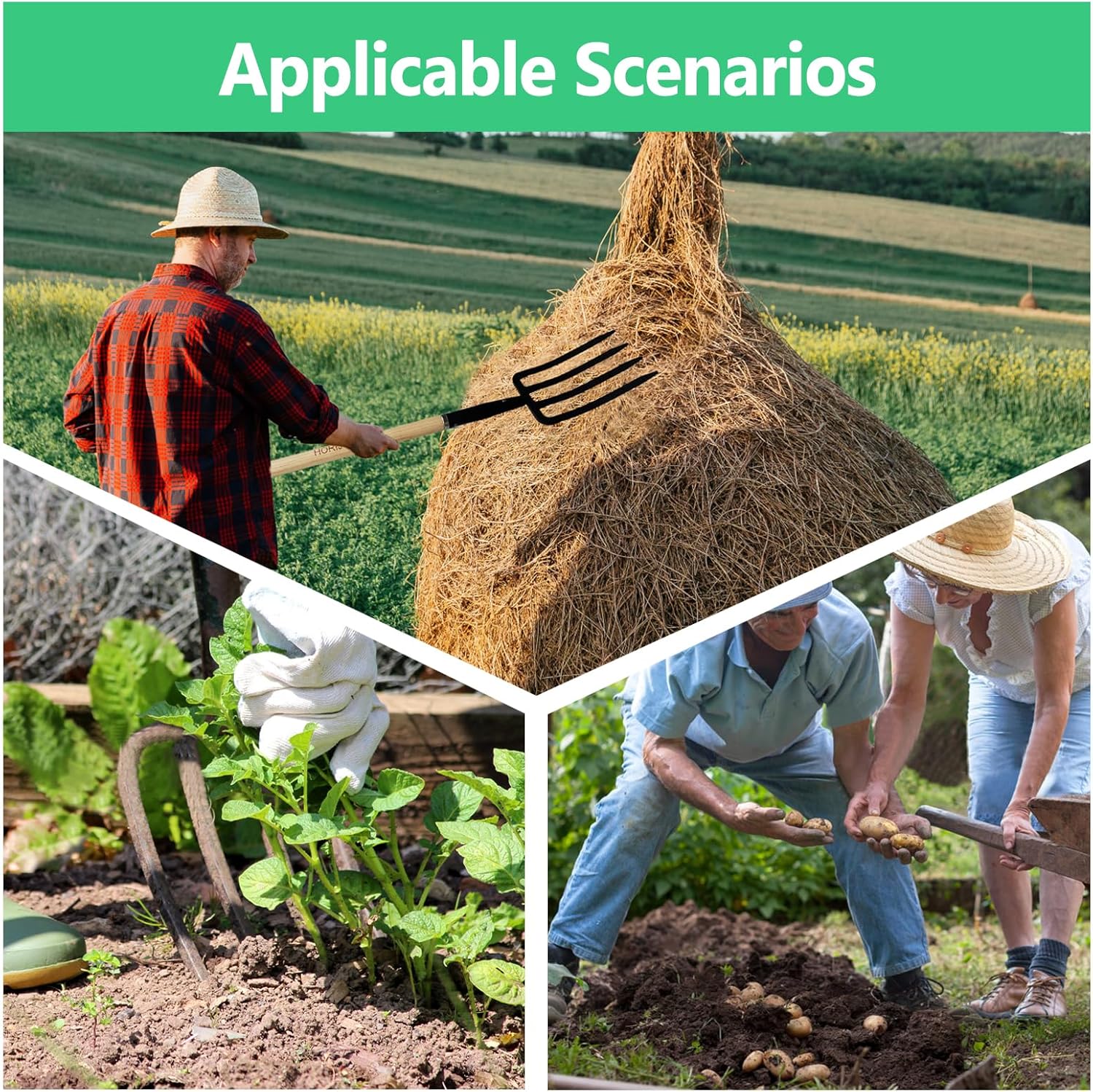 - Multi-Use๏ผThe sharp V-shaped tines of the digging fork can quickly penetrate hard soil,Pitchforks For Gardening Suitable For Loosening The Soil, Moving Mulch, Leaves, Straw, Hay Or Garden Debris, Turning Over Compost, Soil And Digging Potatoes Garlic.