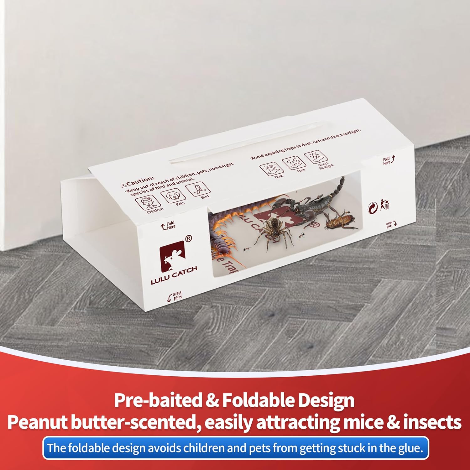 LULUCATCH Glue Traps,12 Pack Mouse Traps Indoor for Home, Pre-baited Non-Toxic Bulk Adhesive Bug Catcher, Sticky Traps for Catching Bugs, Mice, Spiders, Cockroaches, Pet Safe Pest Control