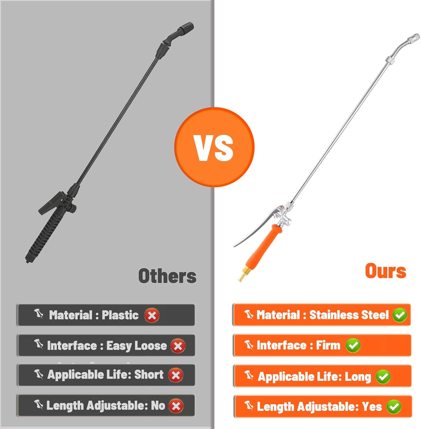 - 🛠Easy Installation: Our replacement wand for sprayer comes with clear installation instructions for hassle-free setup. Cut the hose, slip on the clamps, and insert the new wand into the hose, then tighten with the provided clamps. It's that simple to upgrade your sprayer and enhance your gardening experience.