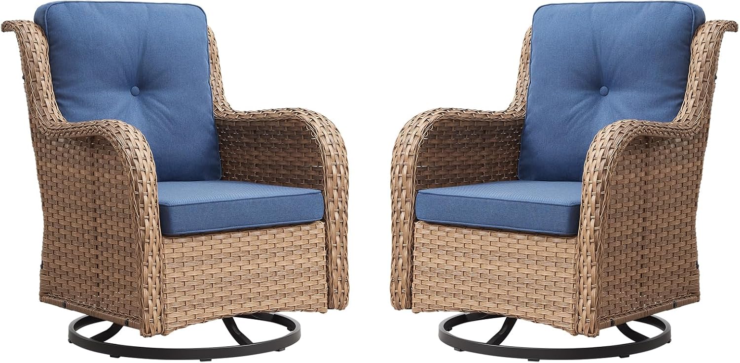 - 【Comfort Cushions & Deep Seating】This patio wicker swivel chairs feature deep and wide seats,with 4-inch thick sponge-padded seat cushions,5-inch back cushion create the ultimate patio seating experience.