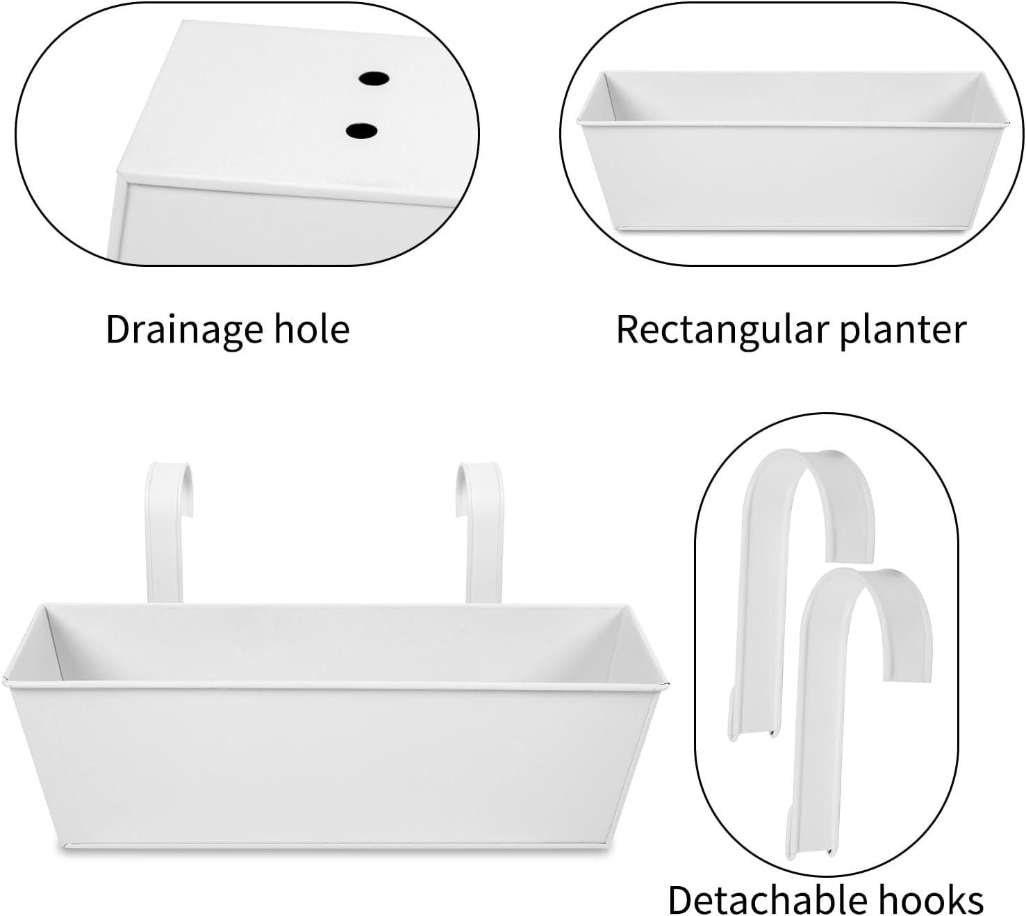 - SUITABLE SIZE: Our railing planters measure 15.8" x 5.1" x 5.1", and the hook is suitable for railings up to 2.5 inches. Make sure to check the size before purchasing, and note that the hook arrives disassembled.