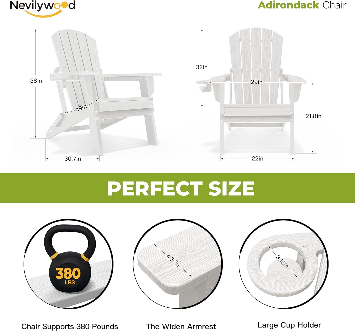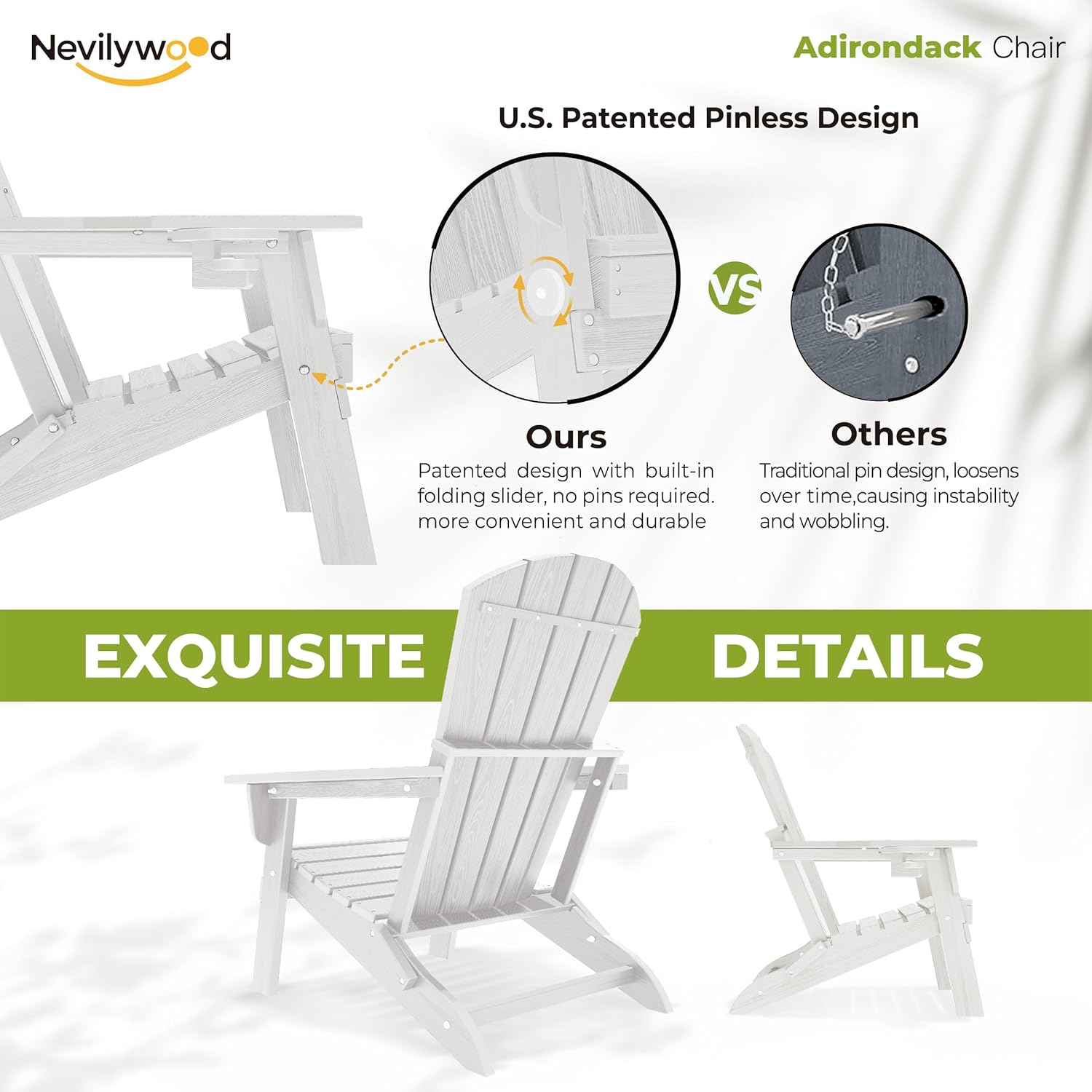 - 🌟Effortless Care – Enjoy More, Worry Less: Nevilywood plastic patio chairs are crafted from durable HDPE, making our poly Adirondack chairs maintenance-free and easy to clean—just a quick wipe, and they’re good as new. Whether dealing with kids, pets, or outdoor messes, you can relax knowing your furniture is ready for anything. Your satisfaction is our priority, and we offer thoughtful after-sales service. Enjoy peace of mind and more time outdoors!