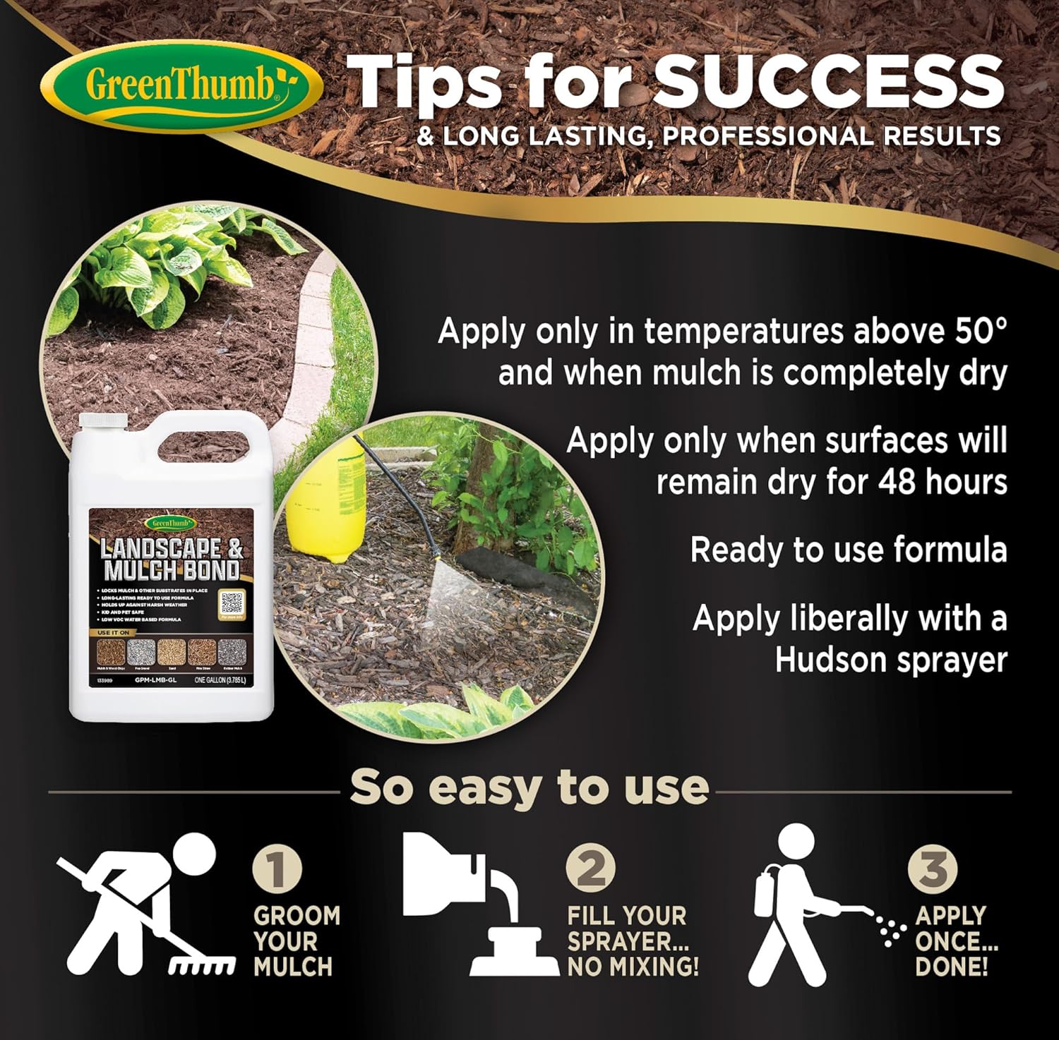GreenThumb, Landscape and Mulch Bond, Mulch Glue for Landscaping, Rock, Pea Gravel & More, Non-Toxic, Ready-to-Use Mulch Binder Glue, 1 Gallon