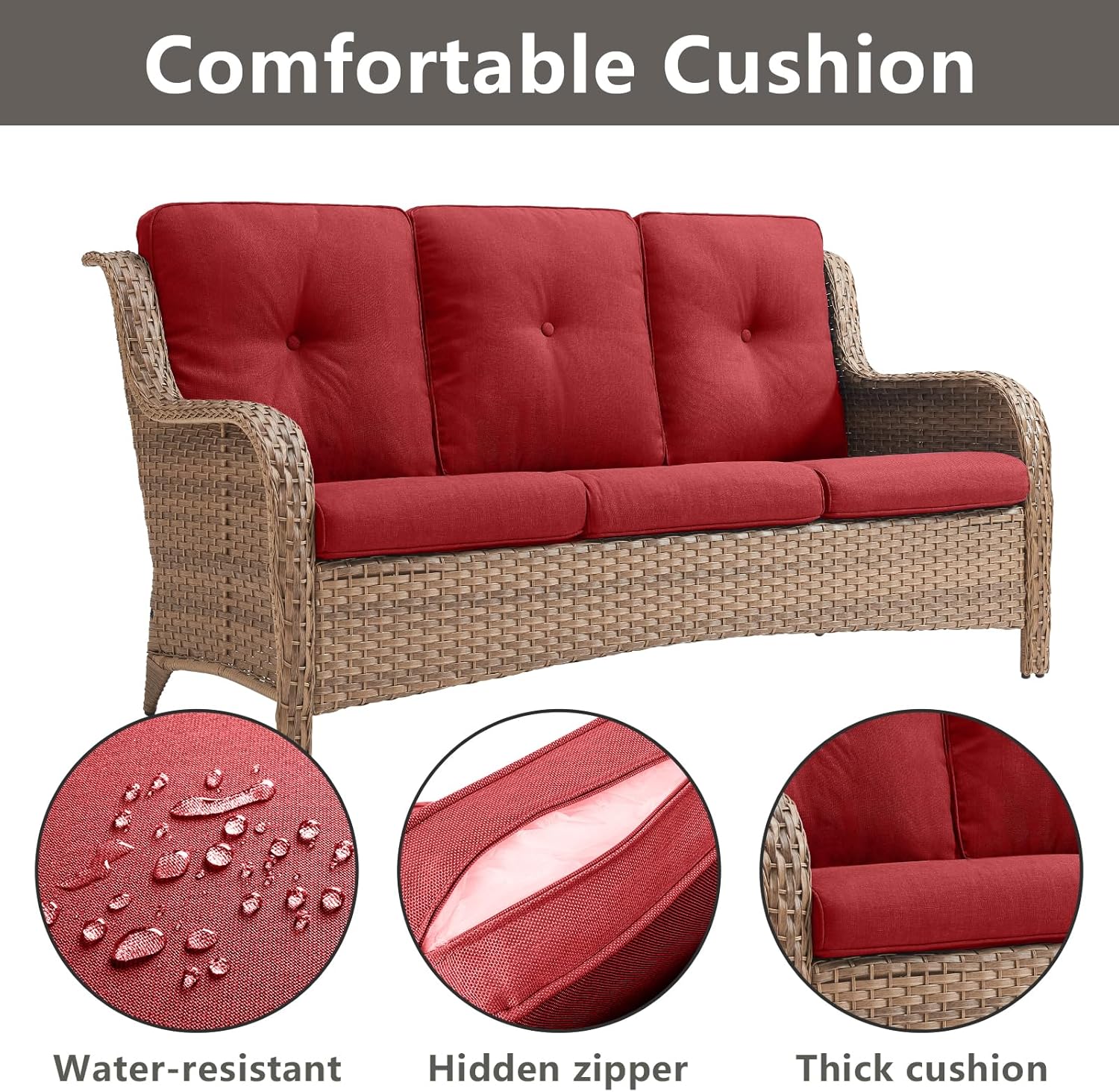 - 【Comfort Cushions & Deep Seating】This patio wicker swivel chairs and sofa feature deep and wide seats,with 4-inch thick sponge-padded seat cushions,5-inch back cushion create the ultimate patio seating experience.