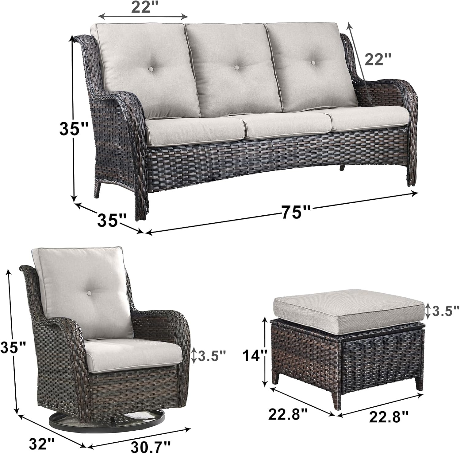 - 【Comfort Cushions & Deep Seating】This patio wicker swivel chairs and sofa feature deep and wide seats,with 4-inch thick sponge-padded seat cushions,5-inch back cushion create the ultimate patio seating experience.