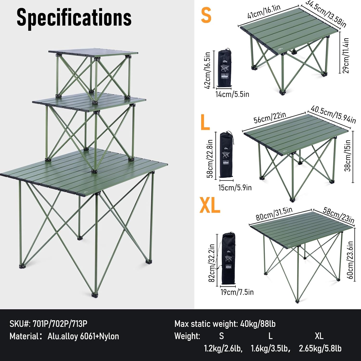 - Ultralight, made of aerospace-grade aluminum alloy, only 2.6 lbs; Max Load 88 lbs; Unlike wooden or nylon-top tables, this table is durable, waterproof, corrosion-resistant, easy to clean; Sturdy joints and anti-slip feet keep the table stable, with legs that won’t fold, bend, or slip on any terrain; Very easy to set up, just open the base frame and attach the tabletop, enjoy your leisure time in seconds, video guide available on this page.