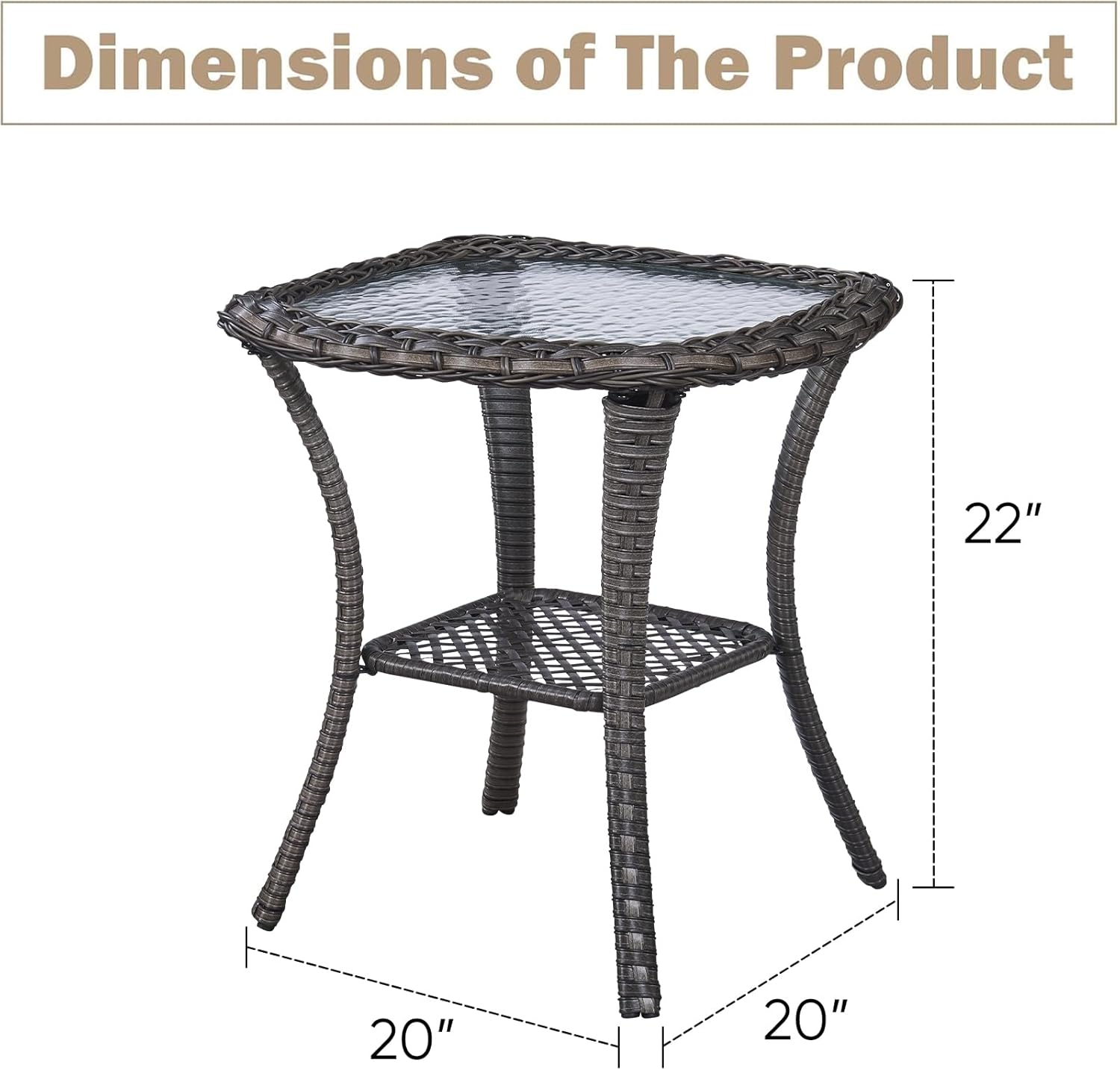 - DUAL TIER SIDE TABLE - The patio side table features a a water-wave tempered glass top with handwoven rattan borders in tabletop tier. The a hollow rattan shelf on secondary tier serves as both a stabilizing structure and a temporary storage area, holding books, snacks, or decor to maintain a clutter-free desktop.