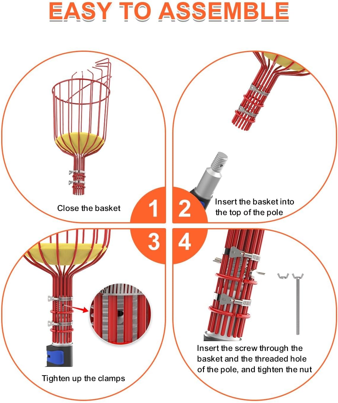 - Easy to Install - This Buyplus fruit picker only requires a few simple installation steps. Firstly, rotate the two metal clips to secure the fruit basket to the pole, then thread the butterfly shaped long screw through the holes on the pole and fruit basket, and finally secure it with a nut. Without the need for additional tools, the fruit picking basket can be easily and firmly fixed to the extension pole, effectively preventing the water fruit basket from falling off.