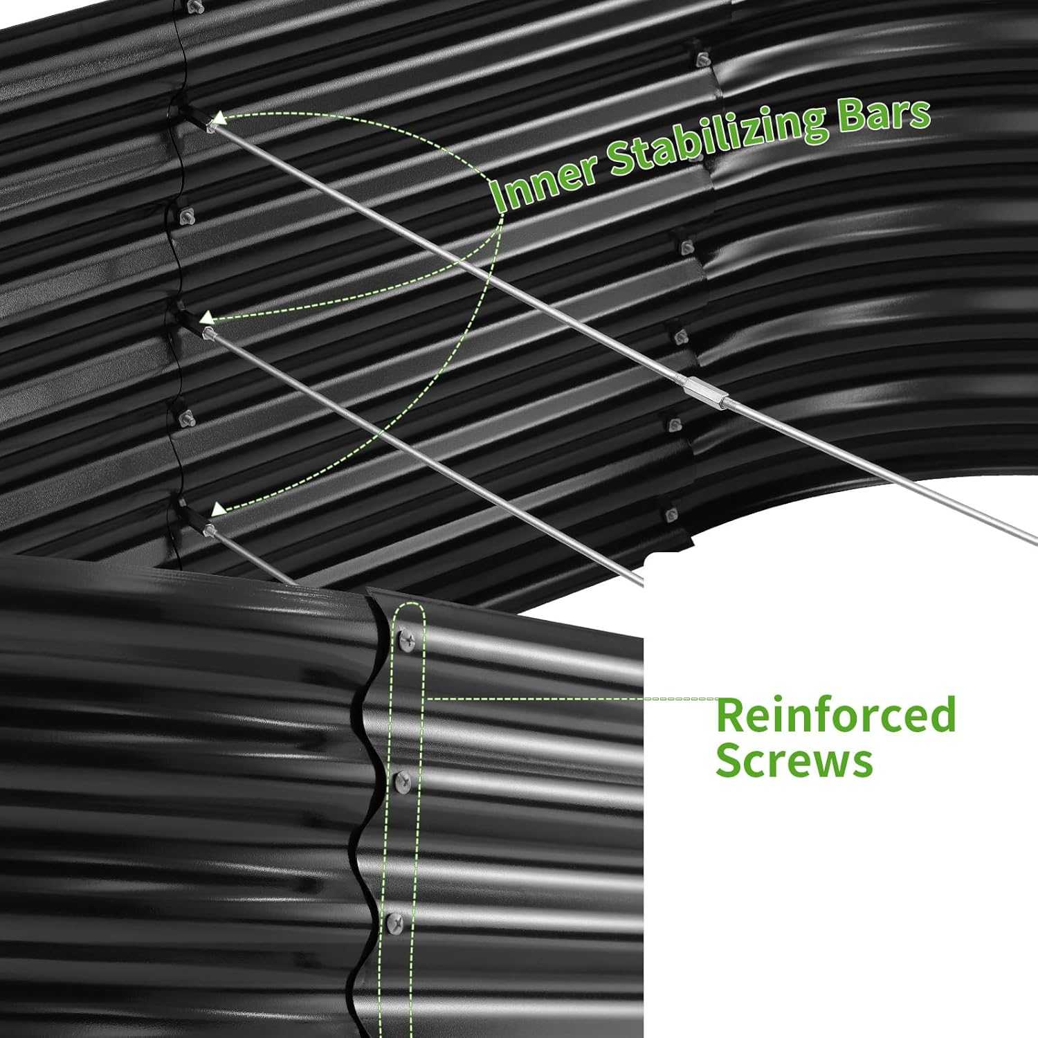 - Durable material: Outdoor planter box is made of stable thickened galvanized metal, corner and frame are reinforced, strong resistance to high temperature and corrosion, can be uesd for a long time.