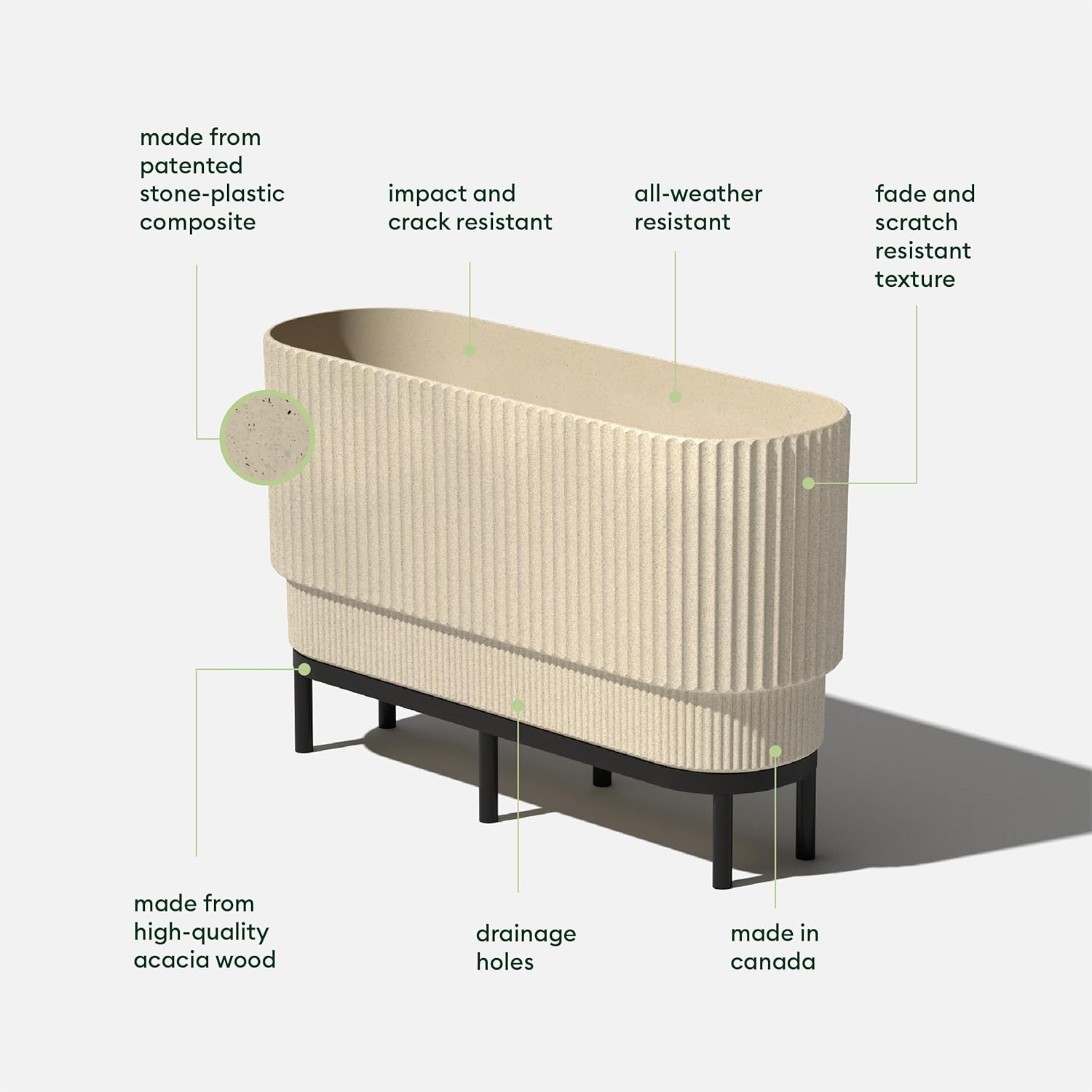 • DIMENSIONS & DETAILS: The Raised Demi Long planter measures 30 Inches in length, 10 inches in width and 14.25 Inches in height. On the stand, the planter measures 19 Inches in height