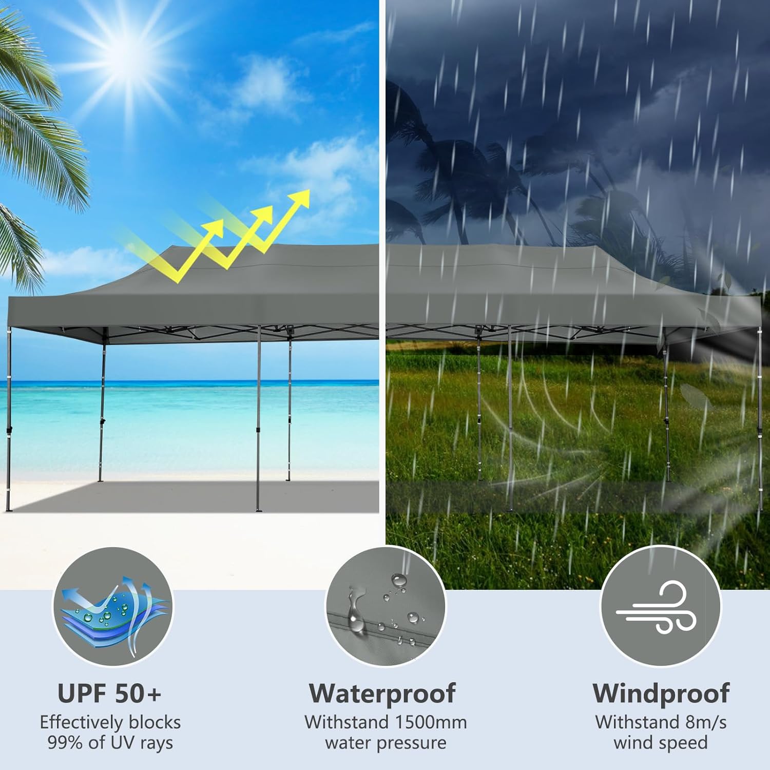 - 【Best Quality Fabric】10x30 Heavy duty canopy tent is made of 500D Oxford cloth with two layers of PU coating, UPF 50+, blocks 99% of UV rays. Heat-sealed seam technology is used, 100% waterproof, 1500mm waterproof pressure, waterproof effect is better than other general tents.