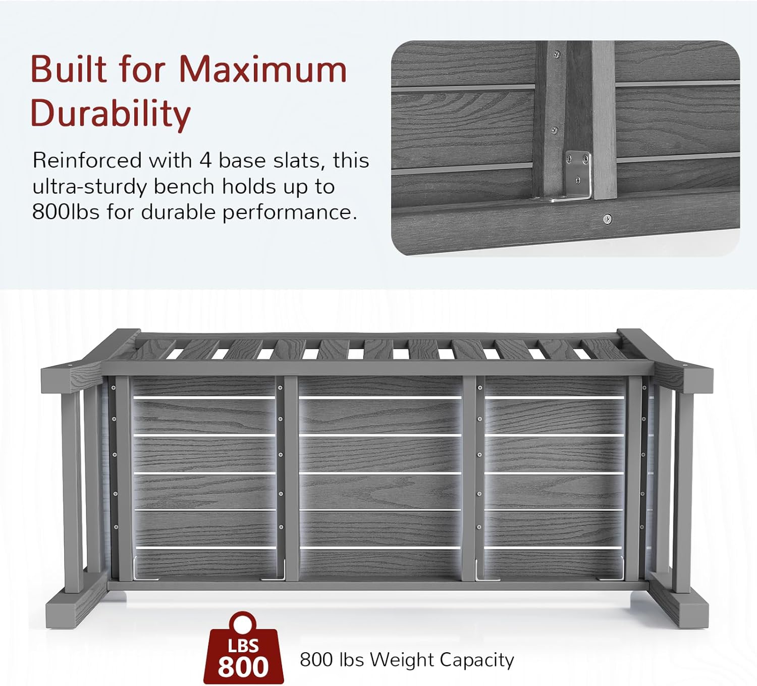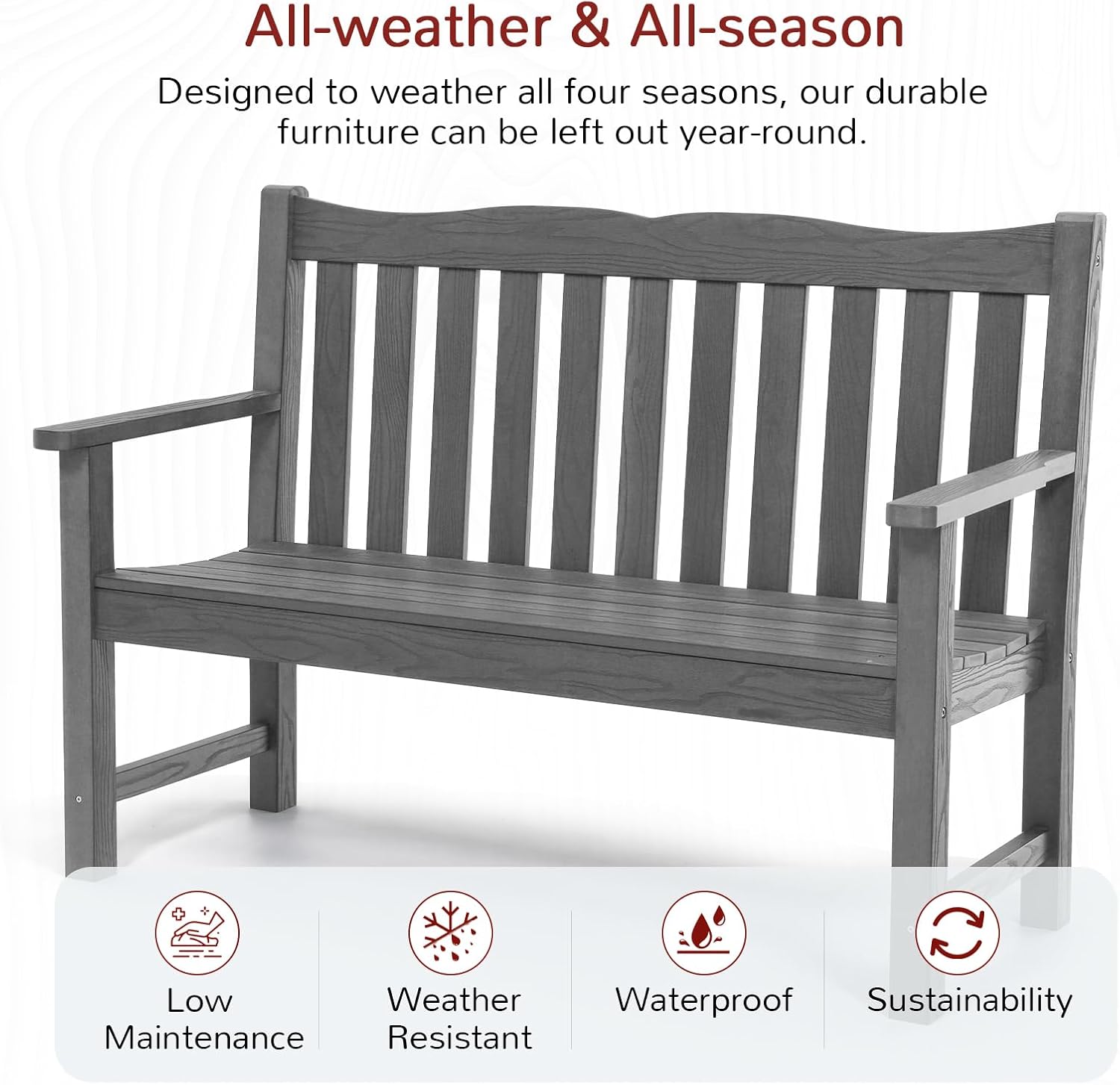 Outdoor Bench, Waterproof Garden Benches Set of 2, Never Rot or Fade, for Garden, Porch, Backyard and Deck, Grey